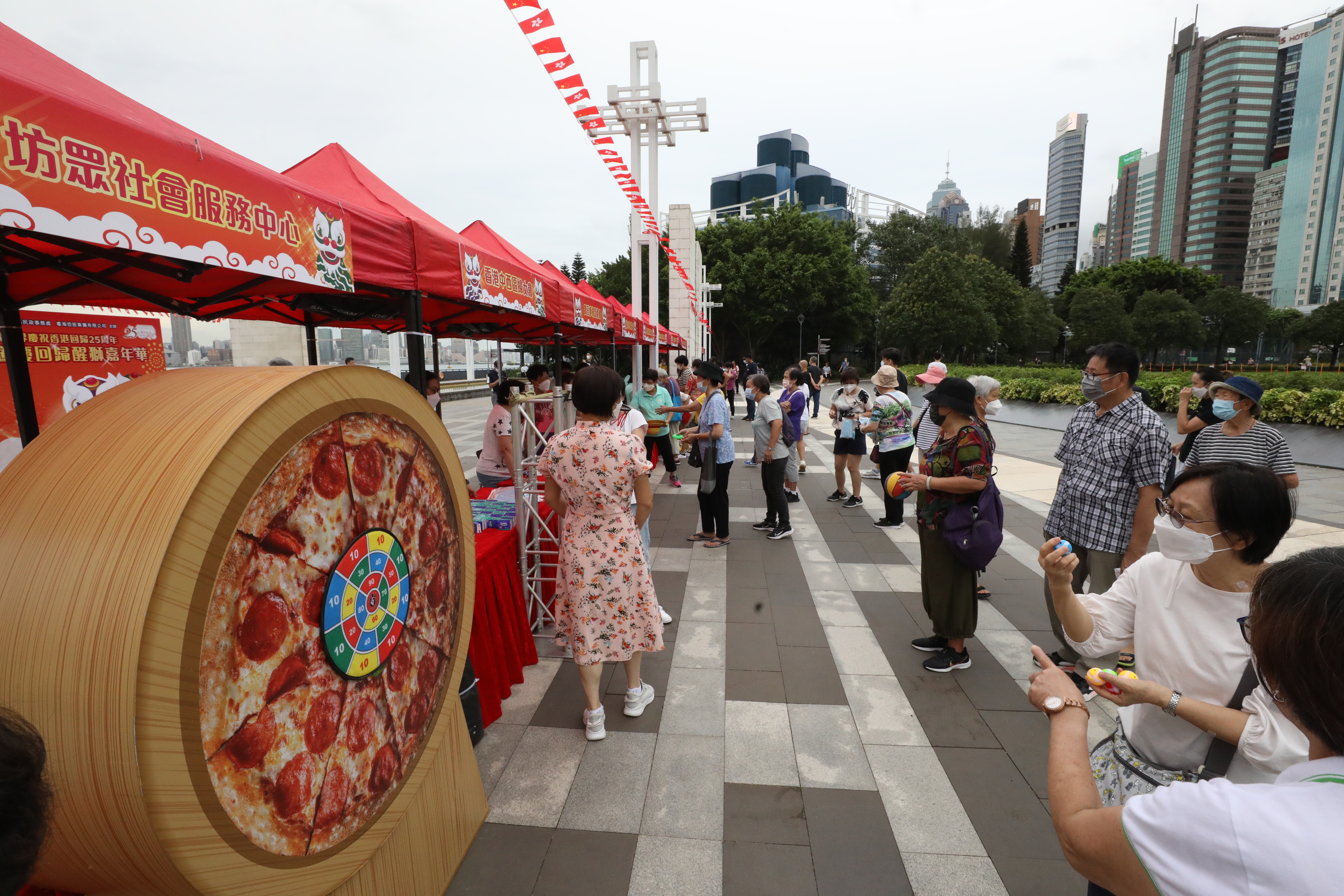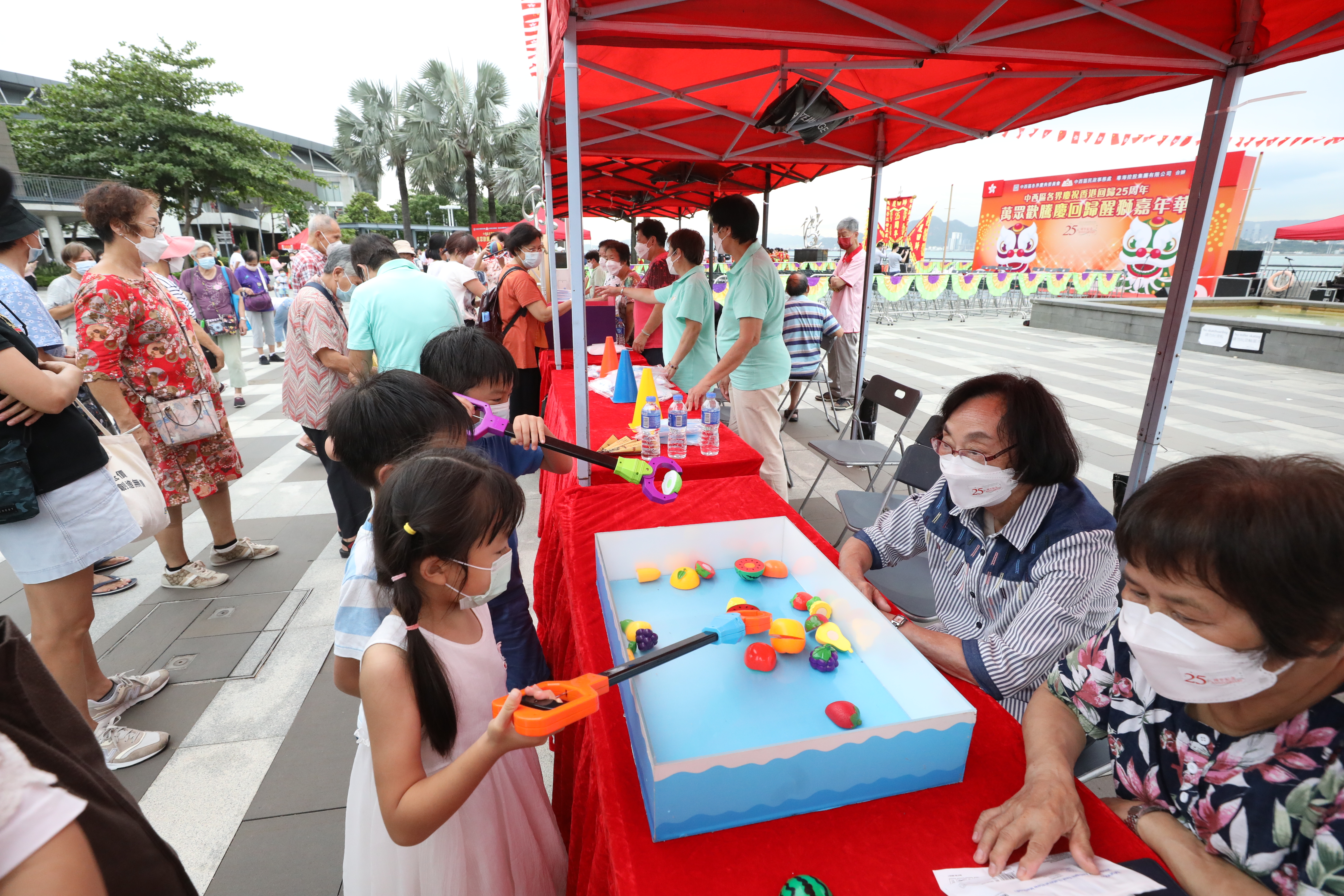 (大公文匯全媒體 記者 萬霜靈)今年是香港回歸祖國25周年,作為「中西區各界慶祝香港特別行政區成立25周年活動」系列活動之一,「萬眾歡騰慶回歸醒獅嘉年華」今日(6日)在舉行,通過活動推廣和傳承傳統舞獅文化,增強市民對社區和祖國的歸屬感。現場設有適合親子活動的攤位遊戲,吸引不少街坊帶同小朋友遊玩。