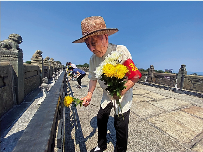 91歲的鄭福來老人無數次從盧溝橋上走過,他說「一上橋,就來精神」。我想那是心中熊熊的愛國熱情給予他的力量。正因為他親眼目睹了在日本侵略者蹂躪下的生靈塗炭,才會對當下的幸福生活更為珍惜。