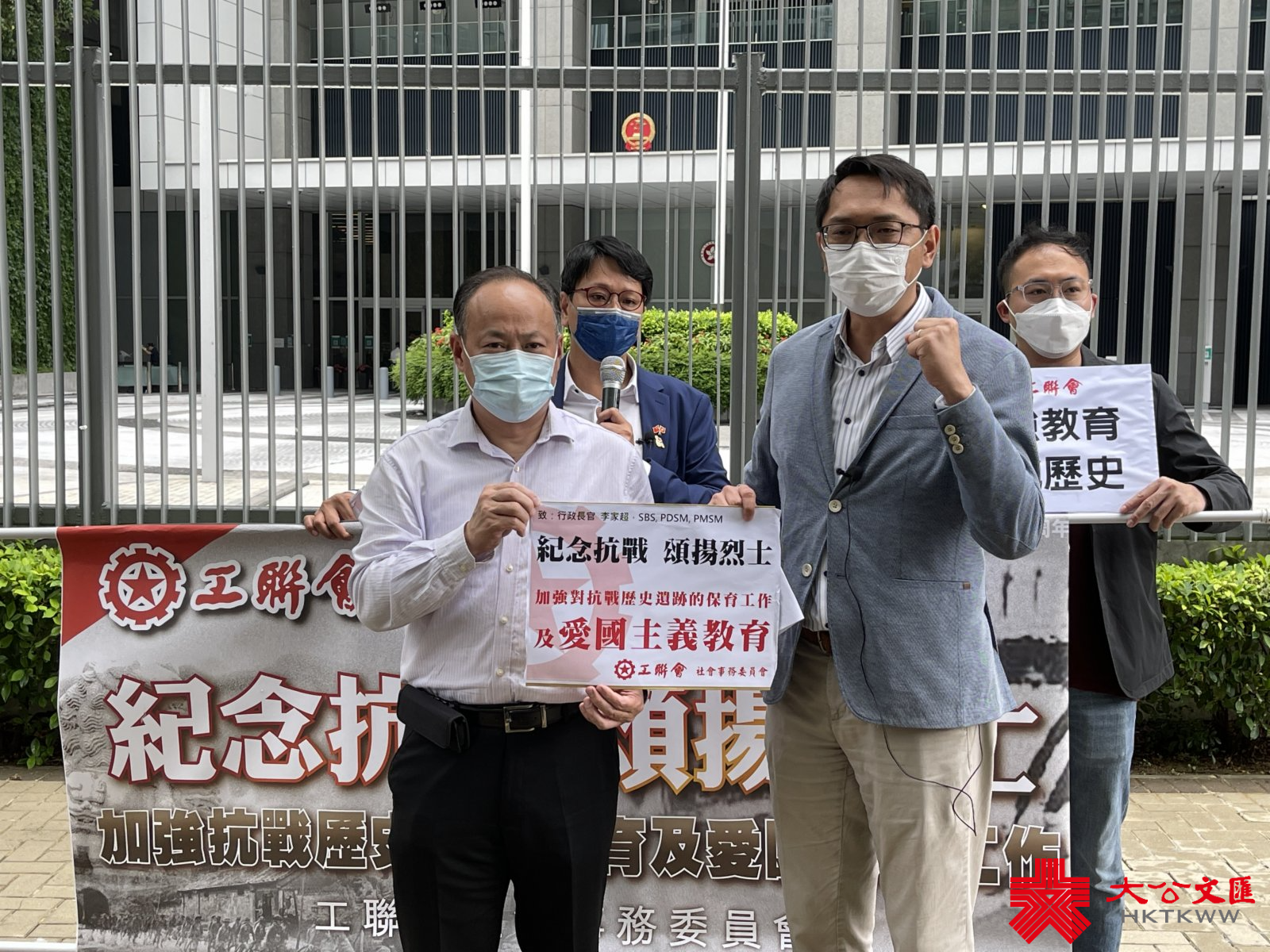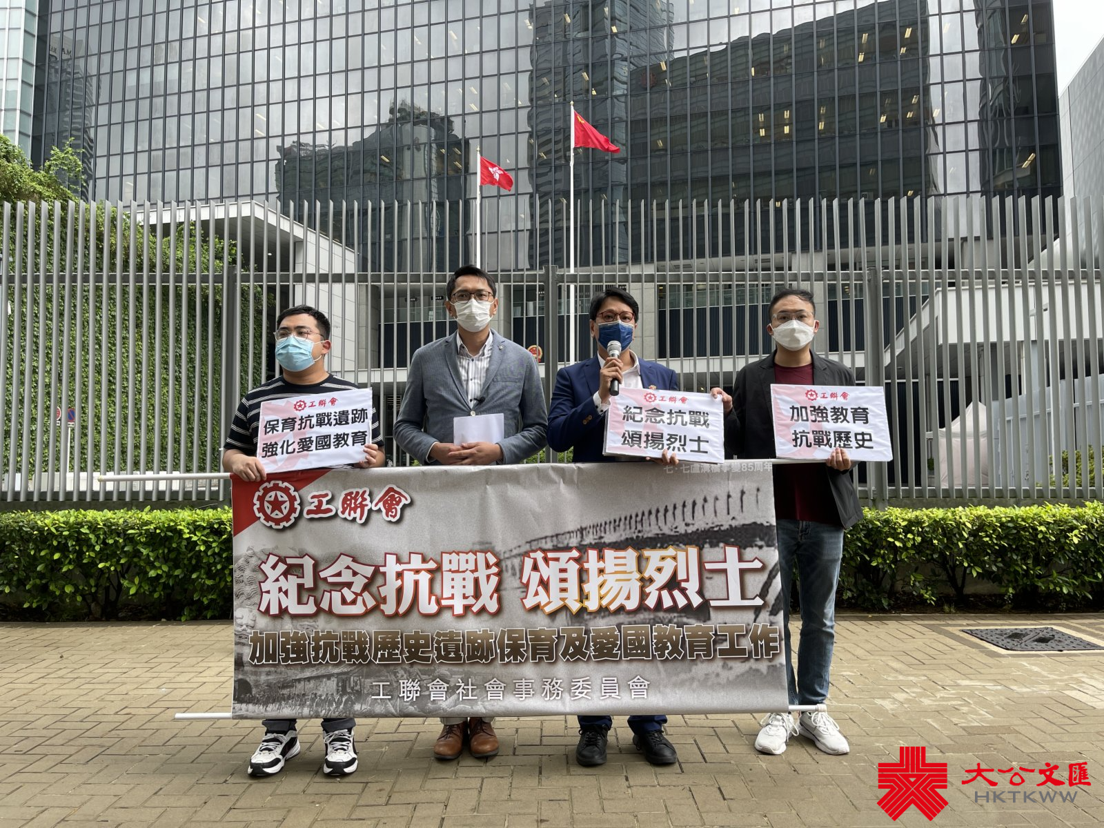 (大公文匯網記者 李斯哲)「盧溝橋事變」拉開了中華民族全面抗戰的序幕,也是中華民族永遠不能忘記的家國記憶。2022年7月7日是「盧溝橋事變」85周年,香港工聯會社會事務委員會今日(7日)到政府外請願,高呼「加強教育抗戰歷史」、「保育抗戰遺跡,強化愛國教育」、「紀念抗戰,頌揚烈士」等口號,要求特區政府加強抗戰歷史遺跡的保育工作,以及加強愛國主義教育。