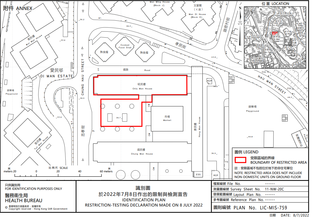 政府將於「受限區域」內設立臨時採樣站,並要求受檢人士於今晚11時前接受檢測。此外,任何於7月2日至7月8日期間曾身處上述大廈內超過兩小時的人士,即使在「相關宣告」開始生效時不在「受限區域」內,亦須在7月10日或之前接受強制檢測。