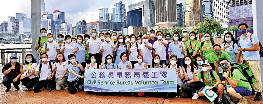 【大公報記者 梁淑貞、梁少儀】昨日天氣酷熱,氣溫升至攝氏33度,無阻一班公務員事務局義工隊及政務主任協會義工隊到離島,為長者、因病患或殘疾而行動不便人士,包括住在大澳棚屋的百歲婆婆,提供上門新冠疫苗接種服務。上任一個多星期的公務員事務局局長楊何蓓茵昨晨率領約20名義工隊成員,夥拍外展醫護人員共約40人,浩浩蕩蕩齊集中環碼頭,呼籲市民按時接種疫苗。