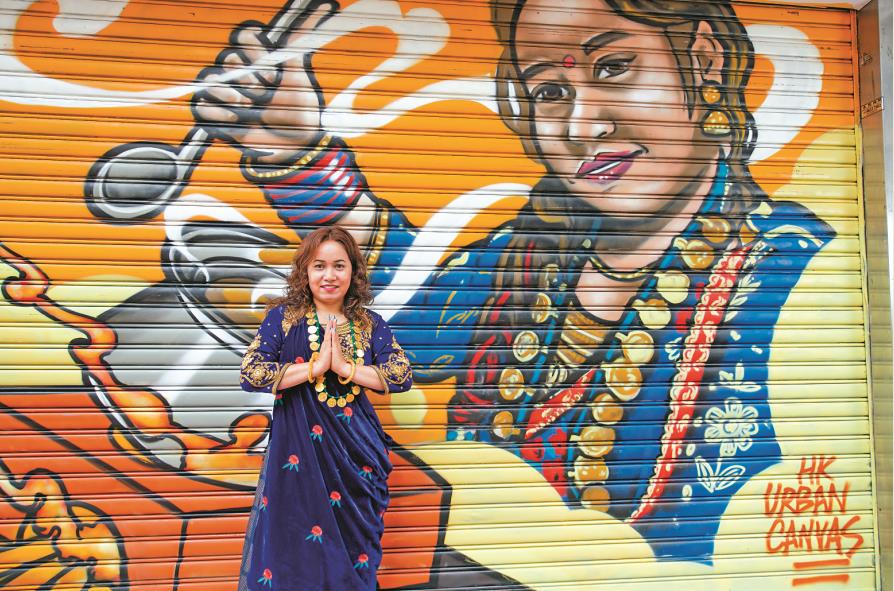 藝術家在左邊的鐵閘畫上尼泊爾文、中文和英文的「好味」;右邊則畫了穿着傳統服飾的老闆娘Pavati,用心地烹調家鄉食物的情境。細心一看,Pavati正在使用一種由泥製成、名為「Chulo」的傳統尼泊爾木柴灶頭,以前尼泊爾人常用它來生火煮食。