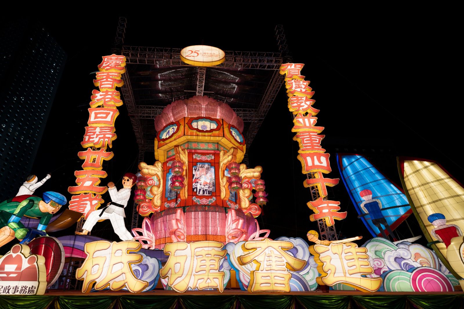 昨晚李家超出席由通善壇、懲教署、中西區民政事務處、康樂文化事務署和中西區各界慶典委員會合辦的大型如意宮燈展覽亮燈儀式。其中一個大型宮燈,以13.3米高、9米闊的體積,成功打破世界最大型吊掛花燈的紀錄!李家超表示,這個花燈是由香港紮作大師夏中建伙同青少年在囚者同受監管者製作,懲教署資助內地學校的學生亦有參與設計。恭喜夏師傅和製作團隊。