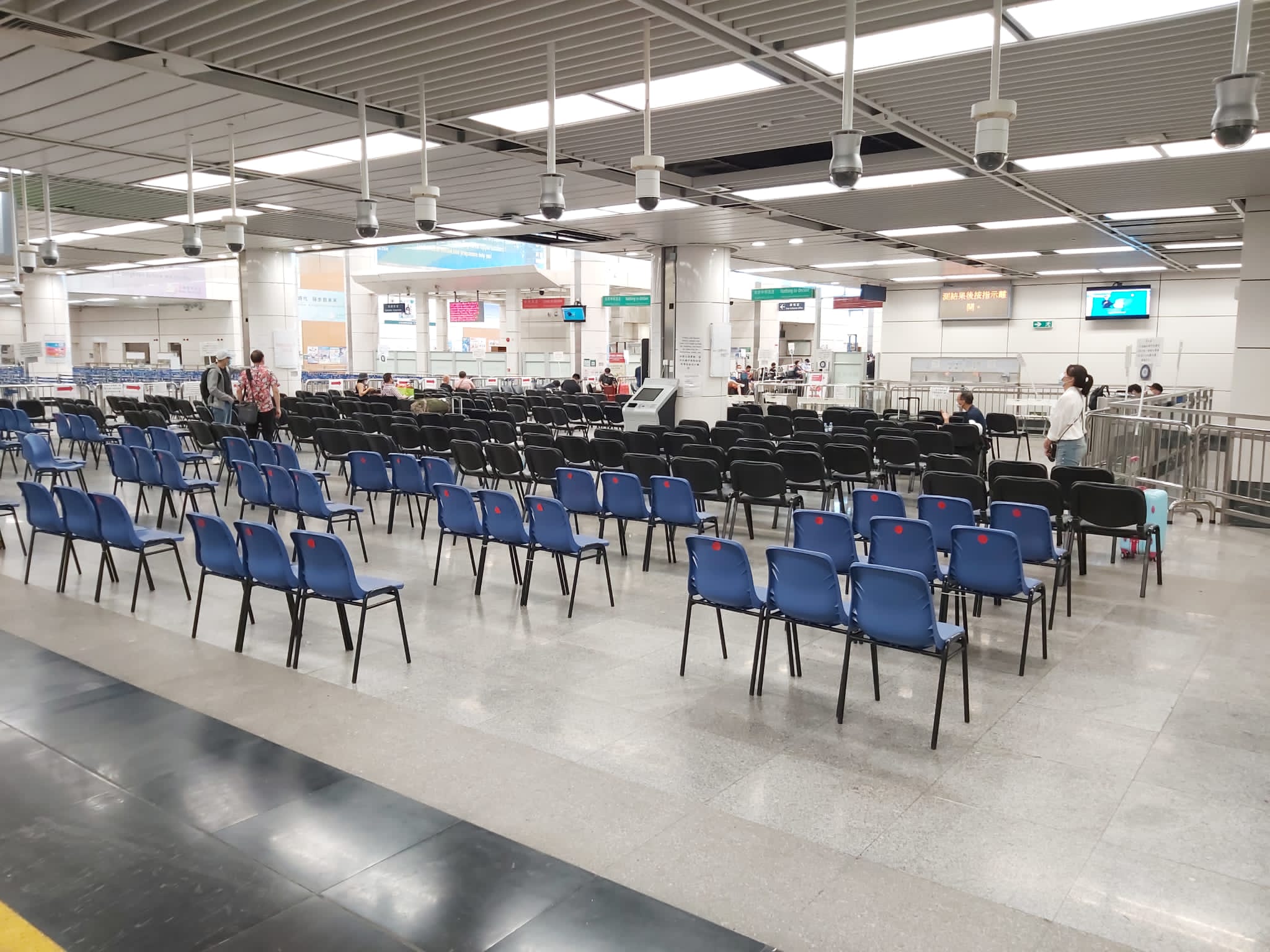 據悉,休息區暫時設有450個關愛座位,並提供飲用水給有需要人士。入境處亦正在加緊尋找合適的室內地方,希望能短期內把座位增至600個。至於尚未接受核酸採樣而需要在離境大堂外圍排隊等候的旅客,入境處和海關同時為他們提供座位及重型風機,讓排隊等候採樣的旅客使用及降溫。