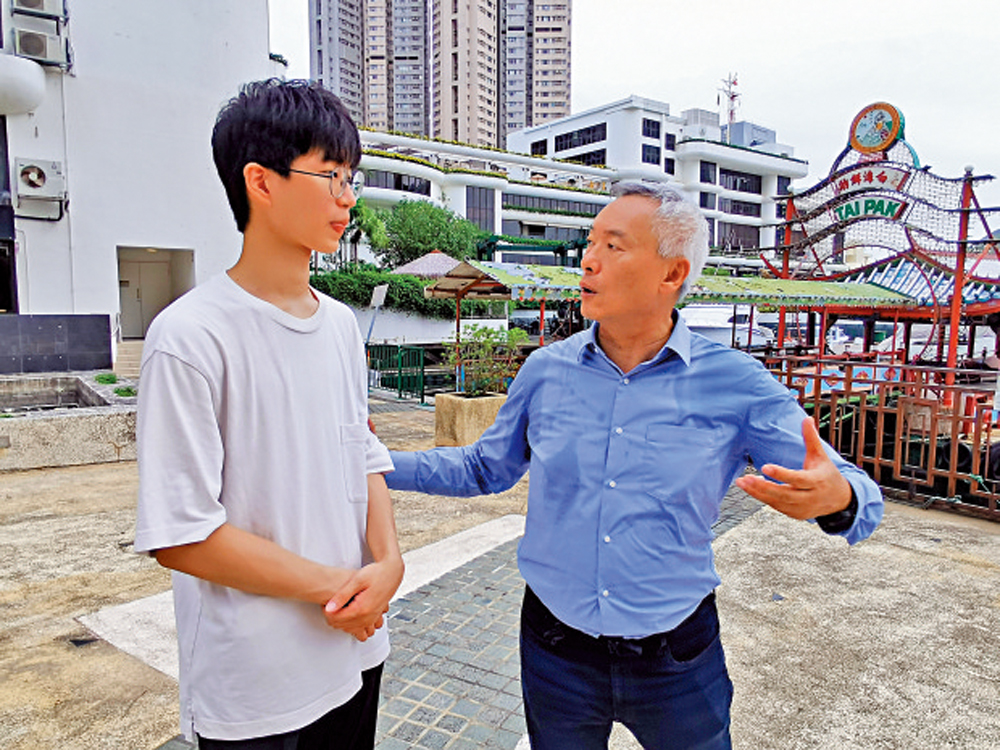 採訪當日下午酷暑難耐,在香港仔珍寶海鮮碼頭,Harry對如何弘揚獅子山精神勉勵年輕人,保育海洋及融入祖國發展,滔滔不絕。
