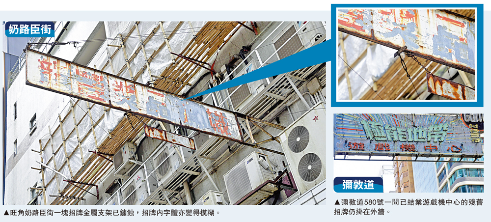 大公報記者近日走訪港九各區八條鬧市街道,在林立的霓虹燈招牌中,發現部分招牌因缺乏維護,不但失去鮮艷光彩,在常年累月的日曬雨淋下,有招牌支架已嚴重鏽蝕,甚至「溶爛」不堪,令人望而生畏。