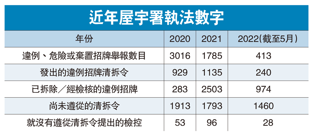 排除隱患|屋宇署:優先取締新建違例招牌
