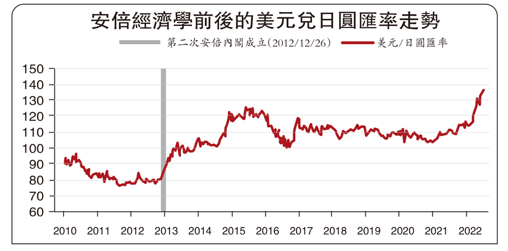 安倍經濟學啟動以來,日圓匯率相較美元貶值約37.5%、日經指數上升了約163%、日本10年利率下行了約77個基點、日本央行的國債資產大幅擴大、日本名義與實際GDP分別上升9.0%與4.5%、日本也擺脫了通縮的局面。部分投資者認為,安倍遇刺身亡或代表過去十年安倍經濟學的結束或逆轉,進而短期內或存在定價日本央行轉向,做出逆轉「安倍經濟學交易」的可能性。