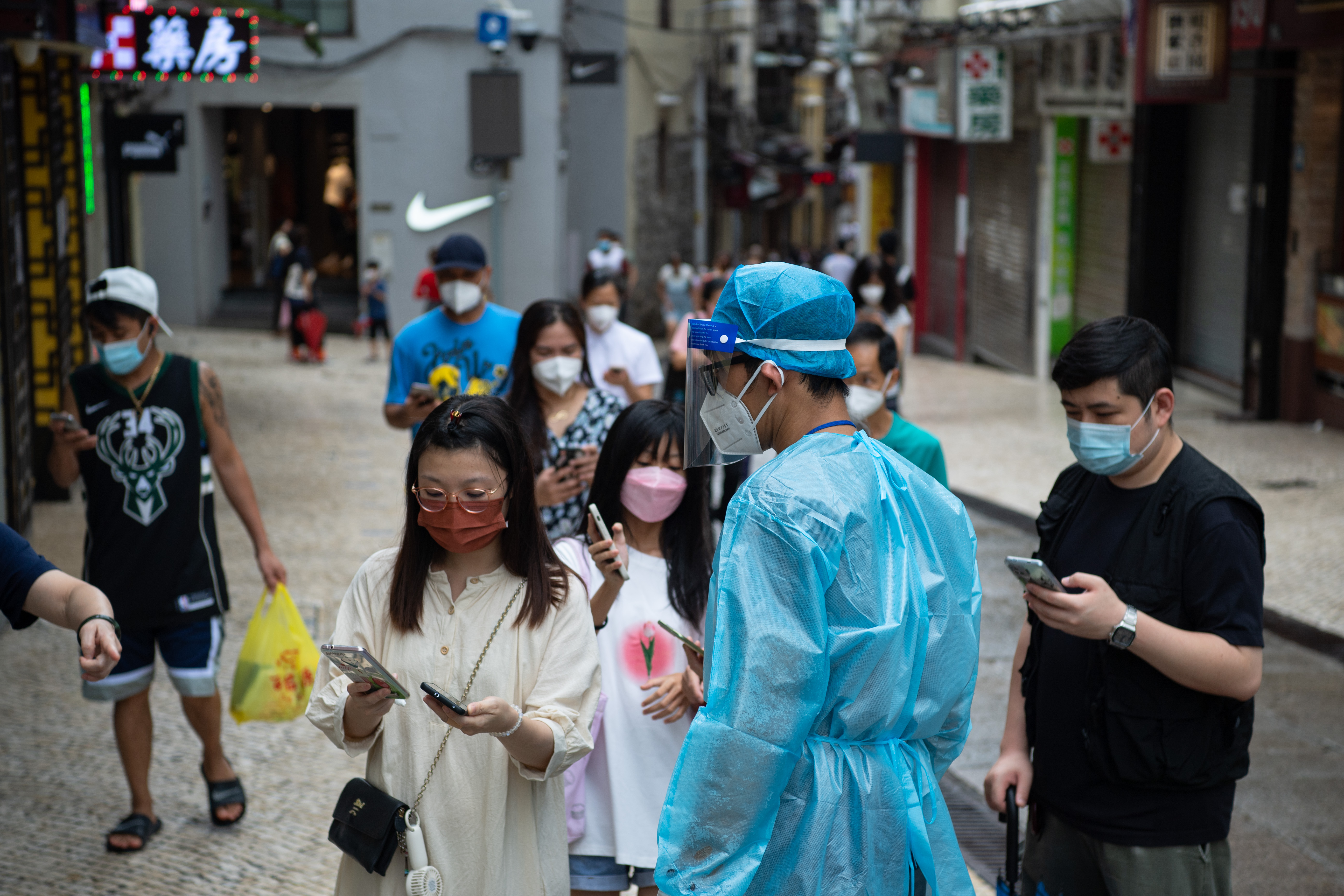 有賭場今日凌晨拉起鐵閘,張貼暫停營業告示。此外,澳門特區政府把需上班的餐飲服務業人員、外賣員、公共巴士及的士司機,列為重點人群,今日起一連7日,每天做一次核酸檢測,並規定所有的士司機須佩戴KN95或以上標準的口罩及面罩、前排座位不可載客、司機位與後排座位之間加裝遮擋裝置。