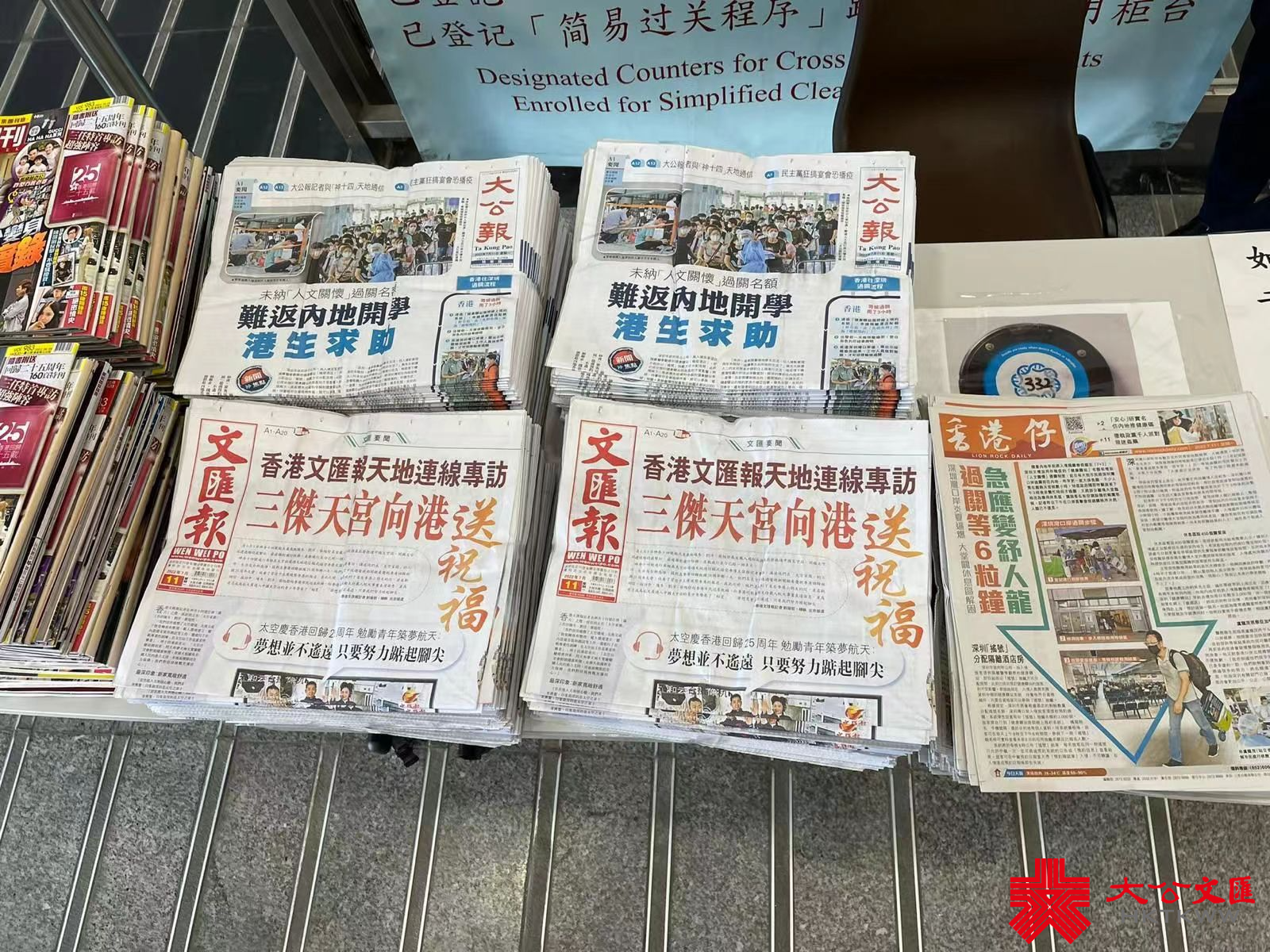 大公文匯全媒體報道,近日香港與內地陸路主要過關通道深圳灣口岸大排長龍,大批市民等候數小時才可過關。為減輕等候人士的焦慮,更方便他們可及時獲取豐富的時事資訊和防疫信息,大公文匯傳媒集團經與香港政府入境事務處協商,決定從今日(11日)起每日為深圳灣口岸港方區域配發《大公報》、《文匯報》和《香港仔》三報,受到過境旅客的關注和歡迎。