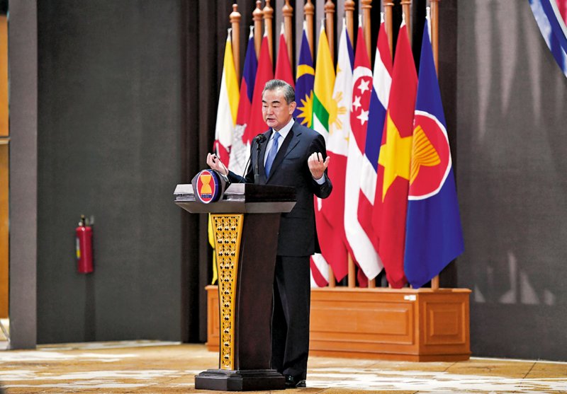 7月11日,國務委員兼外長王毅在東盟秘書處就堅持開放的區域主義發表政策演講並答問。