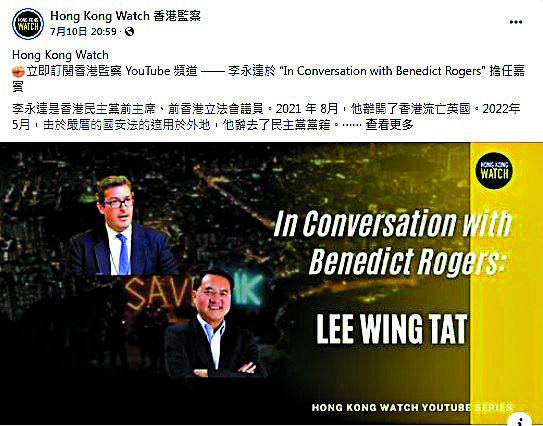 李永達在所謂會談中,無端指責特區政府拖垮香港的民主發展,訛稱市民會因在社交媒體上批評政府而被捕。他揚言,自己將與英國國會議員、非政府組織等合作,共同把香港的關注議題帶給世界各地領袖,令他們與中國政府溝通時,表達對香港的關注並施壓,更希望西方國家在「黎智英案」及「35+」初選案審訊期間,英國及其他國際組織向當地政府提出相關建議並提供適當協助云云。