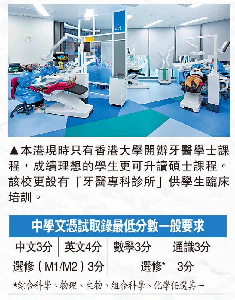 (大公報 記者 張凱晴)香港大學的牙醫學位課程於2017及2018年在國際高等教育資訊機構Quacquarelli Symonds(QS)的全球學科排名首位,入讀難度之高可想而知。