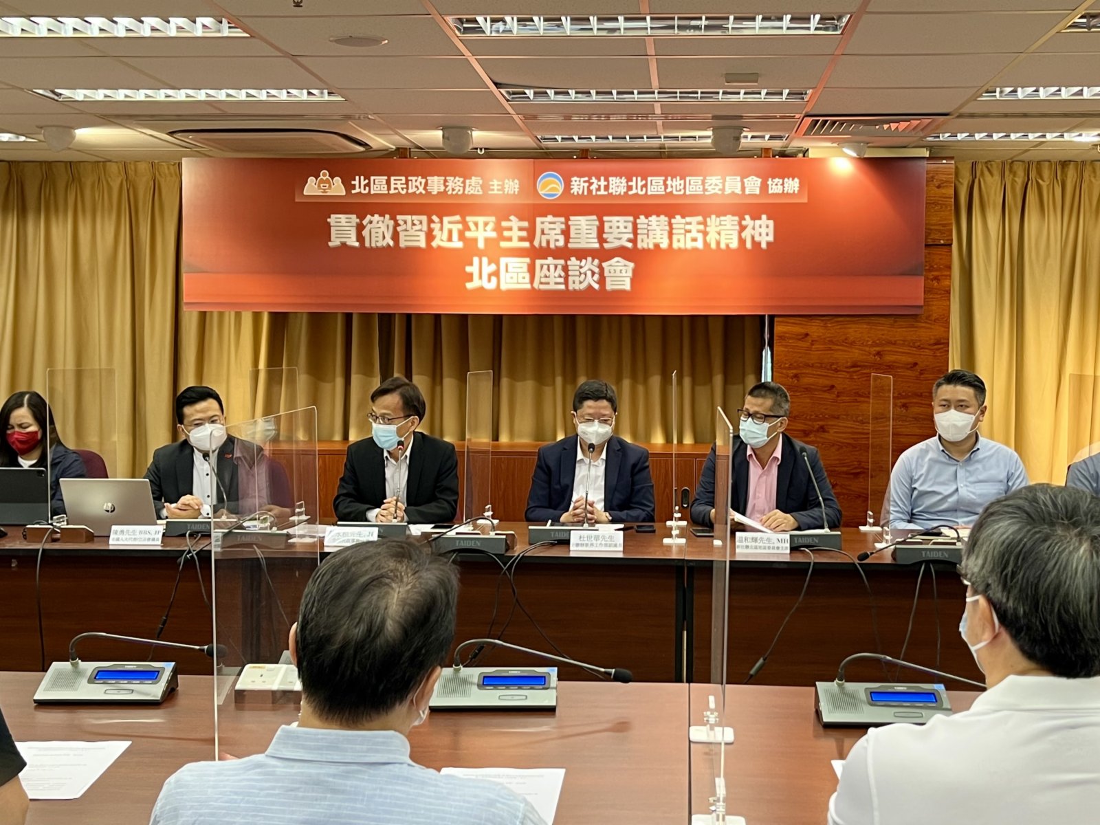 北區民政事務處今日聯同新界社團聯會北區地區委員會在北區民政事務處會議室舉行「貫徹習近平主席重要講話精神北區座談會」。座談會由北區民政事務專員莊永桓主持,並邀請港區全國人民代表大會代表兼立法會議員陳勇作主講嘉賓。大約60人出席座談會,與會者包括香港中聯辦新界工作部副處長杜世華和新社聯北區地區委員會主席溫和輝。