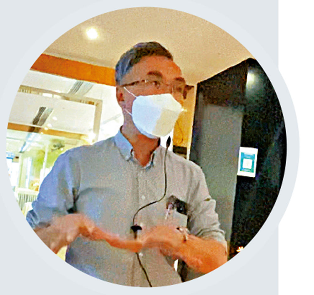 民主黨公布取消原定於明日舉行的籌款晚宴。大公報記者昨日到尖沙咀帝國中心Club One酒樓查詢民主黨宴會被取消一事,陳經理(圓圖)向記者表示,由於早前附近有確診個案,加上酒樓的抽風系統不達標,有零件須更換,所以決定本周六關門維修。至於民主黨有否要求退訂還是擇日再舉辦,陳經理表示不知道,要由公司決定。