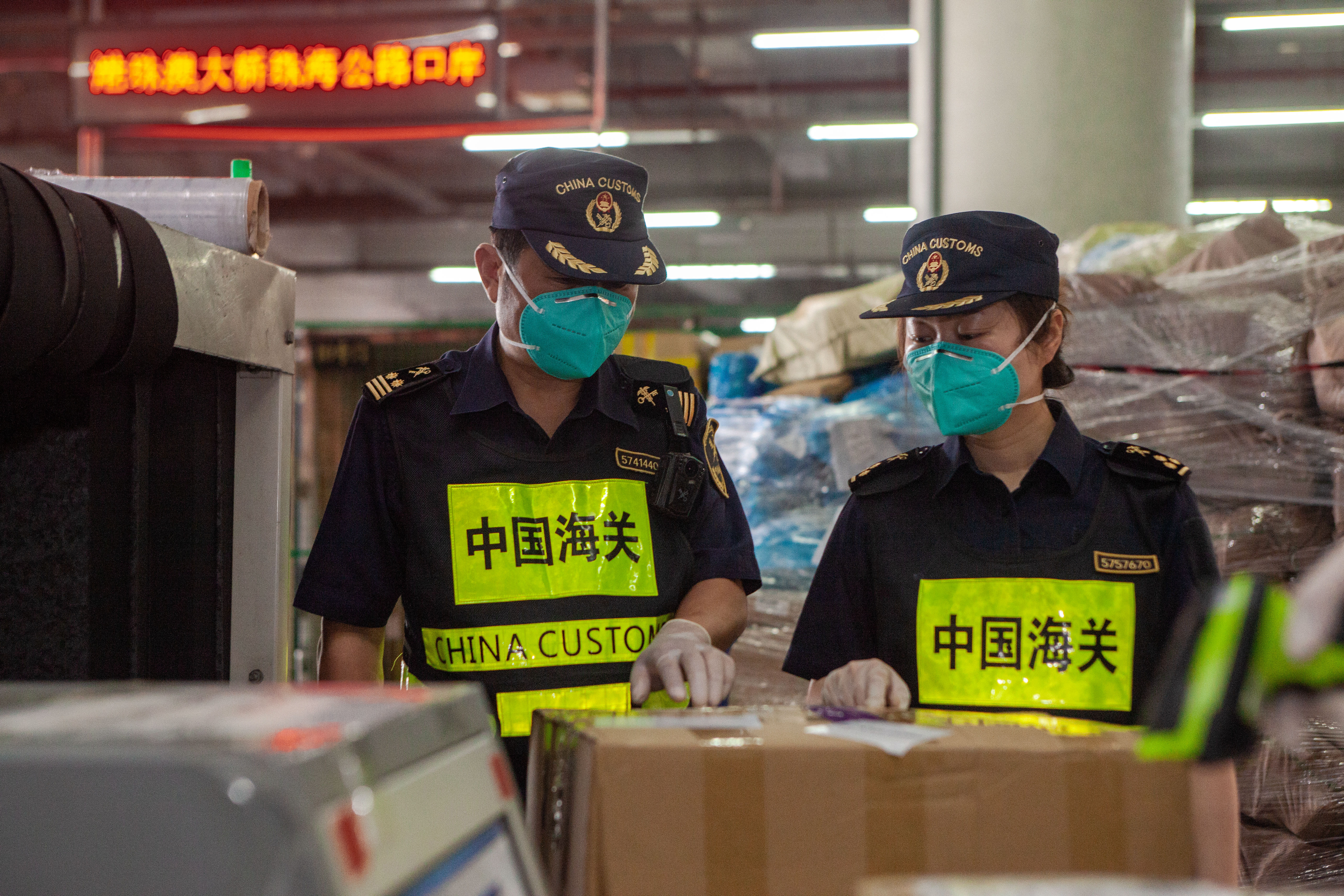 一輛輛滿載包裹的車輛每天停靠在港珠澳大橋珠海公路口岸跨境電商場站,海關關員利用智能設備對包裹進行非侵入式查驗。這些包裹將在海關完成監管後立即轉運至香港機場,搭乘貨運航班飛往世界各地。