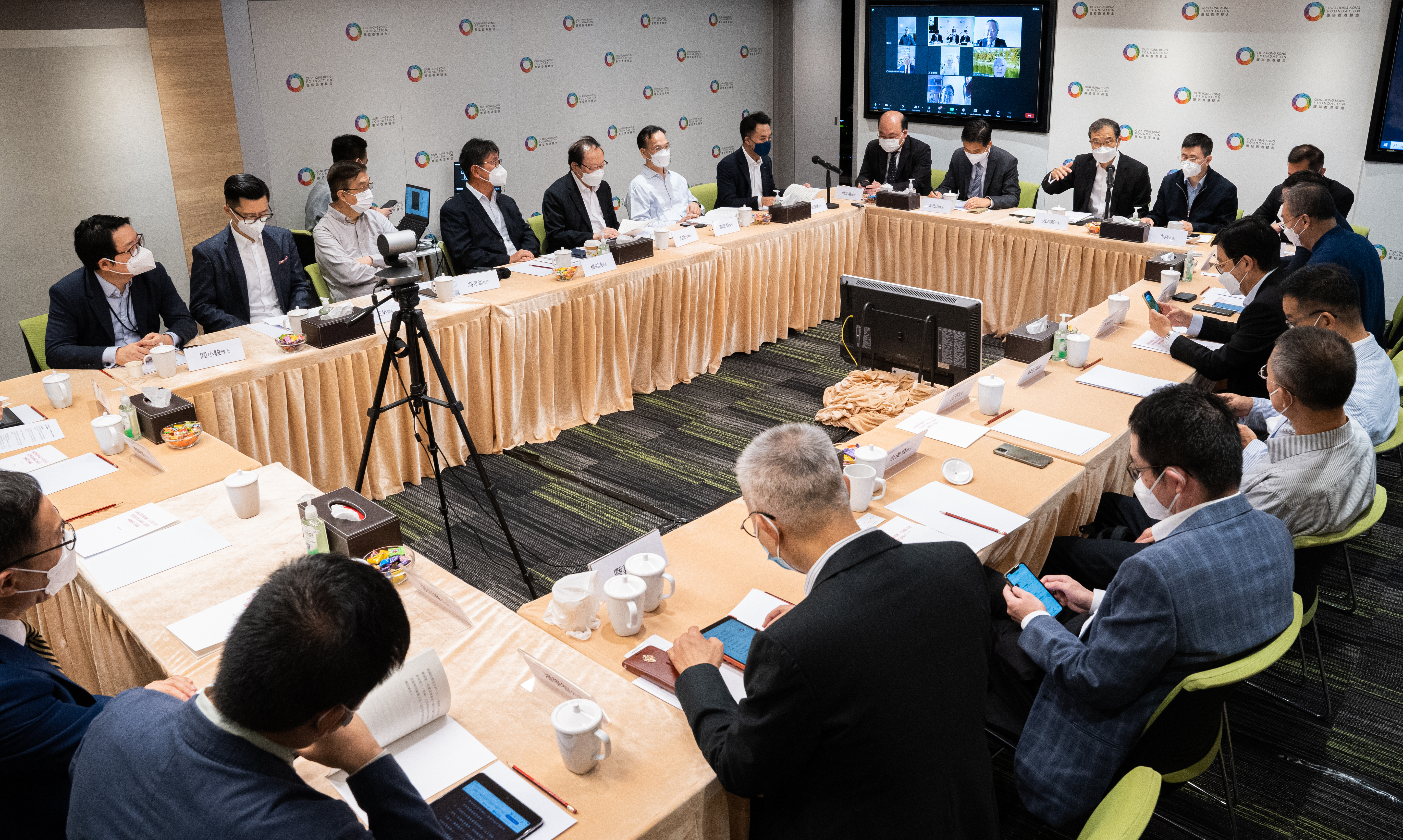 出席會議的還包括中聯辦研究部副部長李兵、香港出版總會會長李家駒、香港中文大學香港亞太研究所副所長(執行)鄭宏泰、中評智庫基金會董事王平、中山大學粵港澳發展研究院院長何俊志、廣東省社科院國際問題研究所所長劉偉、澳門發展策略研究中心會長蕭志偉、香港政策研究所董事暨行政總裁馮可強、政賢力量主席蘇祉祺、民智行動設計智庫副總監宋恩榮、「一國兩制」研究中心研究總監方舟、香港大學中國制度研究中心閻小駿、利豐研究中心副總裁(研究主管)錢慧敏、匯賢智庫政策總監黃彥勳、「一國兩制」青年論壇創辦人兼主席何建宗、明匯智庫顧問暨嘉華、香港「中經文促會」伍俊飛、天大研究院副院長張岩峰、思路研究會研究總監王昊、香港集思會主席楊佰成、香江智匯主席吳歷山、香江智匯會長周伯展、珠海學院「一帶一路」研究所所長陳文鴻、民主思路聯席召集人(研究)潘學智、全國港澳硏究會理事黃梓謙、思匯政策研究所行政總監姚俊業等。