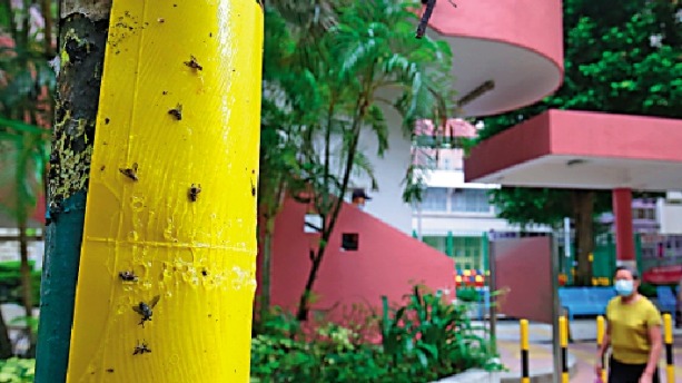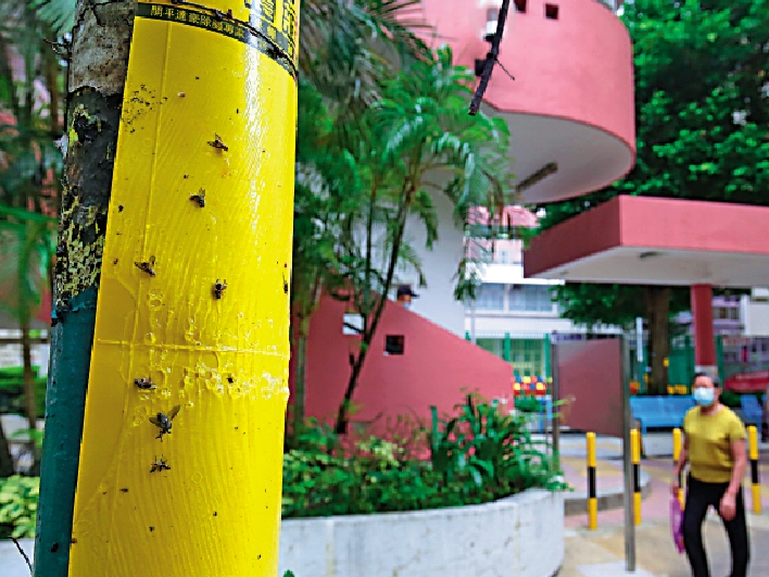 (大公報 記者 賴振雄)本港多區蚊患肆虐,食物環境衞生署早前公布蚊患指數,六個區的蚊患指數超過百分之二十的警戒線,大公報記者在多區不同地方了解情況,將軍澳區內有不少地盤,容易滋生蚊蟲,有惡蚊甚至飛到40多層樓高叮人;數碼港一帶的巴士站蚊、蠓較多,在附近工作的市民候車時,往往需走入商場「避難」;位於藍田的麗港公園,捕蚊的黏紙滿布密密麻麻的蚊屍。有鋁窗維修安裝公司表示,近月不少居民要求安裝防蚊網自救,訂單不絕。
