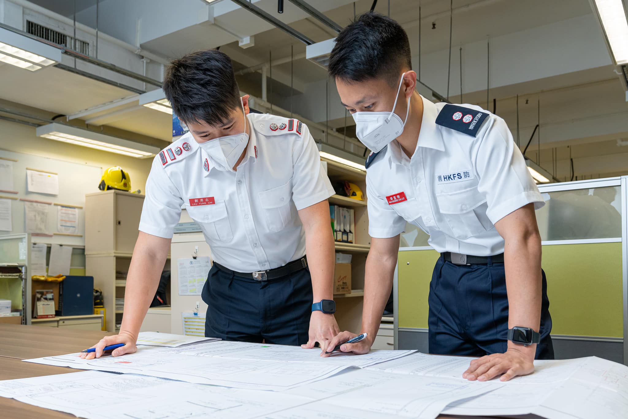 消防處指出,屬員除了在前線進行滅火救援之外,經常會到不同地點推廣消防安全及進行巡查執法等工作。為了提升制服舒適度和方便人員出外工作,消防處為屬員設計新二級制服。新二級制服採用修身剪裁,方便活動,並且使用新功能布料,會更加舒適、透氣。新制服由原來的金屬職階標誌及膠質名牌改用布質肩章和名牌,制服胸口位置亦加上「消HKFS防」字樣的布章,以便市民辨識消防處人員。