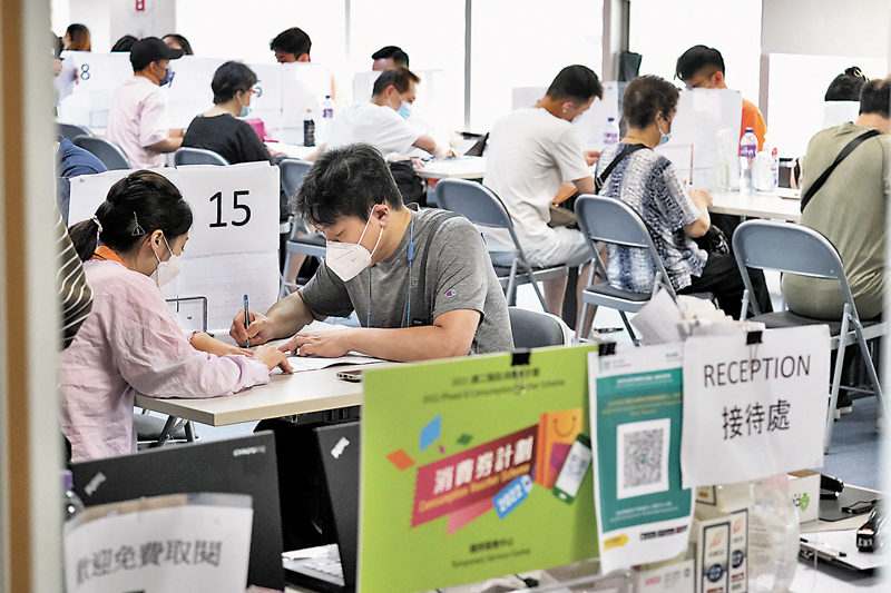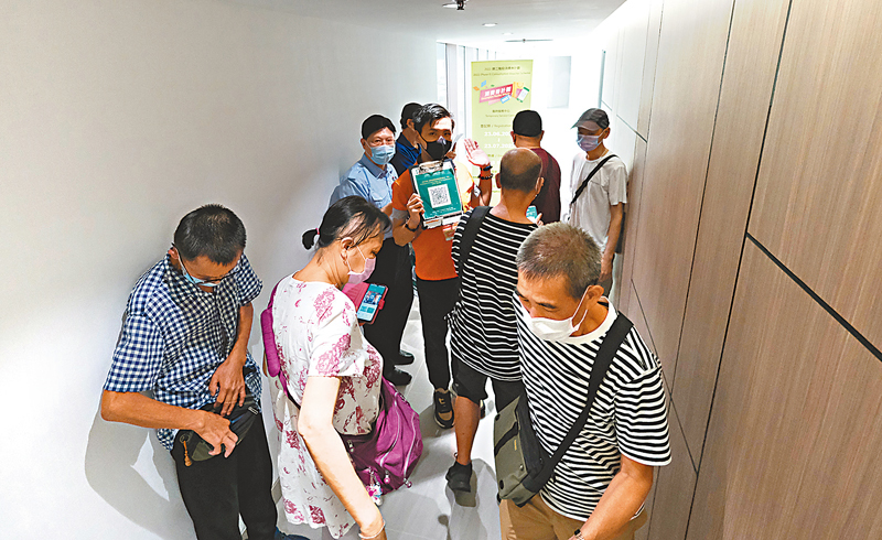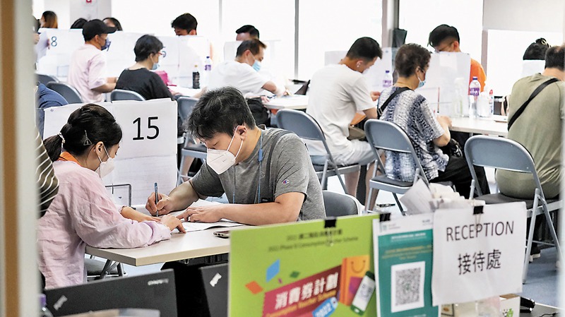 電子消費券的派發本是惠民及促進經濟的好政策,但近日不少市民因各種原因被「DQ」,必須補交證明才能恢復領取資格。香港文匯報記者昨日到位於旺角始創中心的其中一個消費券計劃秘書處(或臨時服務中心),樓下升降機大堂已見大批被DQ市民「打蛇餅」,要等兩三轉升降機才能登上秘書處所在的18樓。