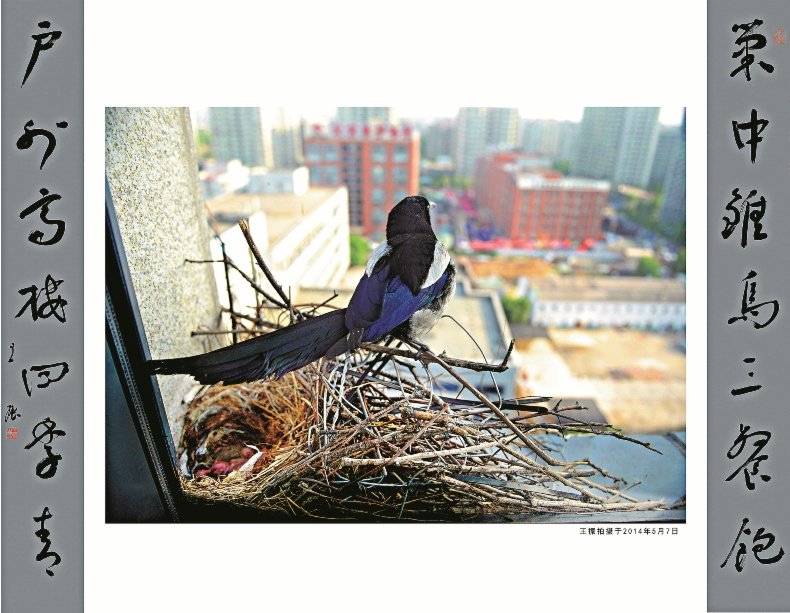 喜鵲的到來給了王振很多創作書寫的靈感。牠們搭建鳥巢精益求精、不辭辛勞,設計施工胸有成竹、將勢就勢,就地取材有的放矢、物盡其用,守護小鳥不畏風雨、大愛無悔,善於高瞻遠矚的天性,還有互相餵食的溫情以及臨危不亂救助兒女的智慧,都令他非常感動。