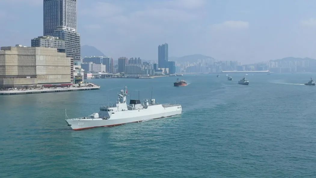 2022年1月,香港某海域天藍海碧,駐香港部隊艦艇編隊犁波斬浪,拉開新年度實訓練兵序幕,編隊指揮艦正是轉隸不久的宿遷艦(舷號666)。