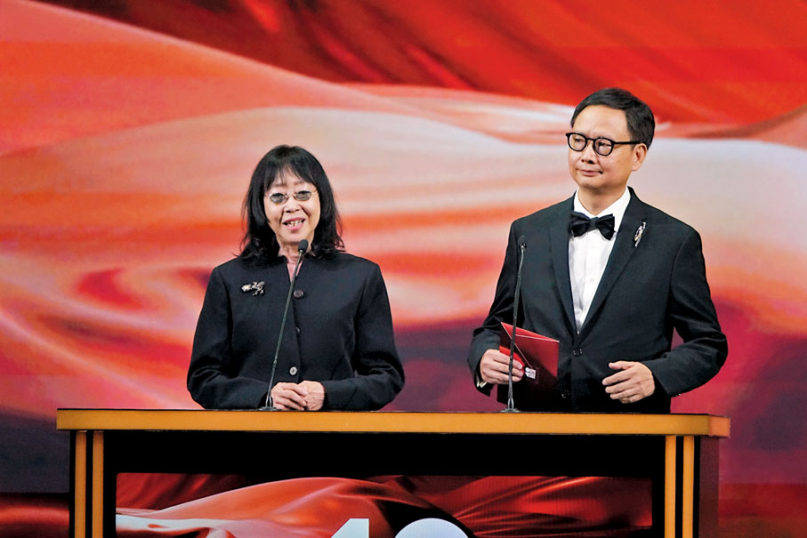 (香港文匯報 記者 梁靜儀、阿祖、達里)影壇盛事《第40屆香港電影金像獎頒獎典禮》昨晚於九展隆重舉行,頒獎禮受新冠疫情影響停辦了兩年,今屆影帝及影后分別由謝賢《殺出個黃昏》及劉雅瑟《智齒》榮膺。「最佳導演」由已故導演陳木勝憑《怒火》奪得,影片同時奪得「最佳電影」等四獎。去年開畫票房最高及入場人次最多的香港電影《梅艷芳》奪得5項大獎成為大贏家,可謂獎金與獎座兼得。至於全晚最感人的場面,當數由劉德華頒發「最佳導演」獎,並讀出陳木勝遺孀的感謝信,今年85歲的謝賢(四哥)從影70年首度贏金像獎最佳男主角全場起立致敬,亦屬歷史性時刻。