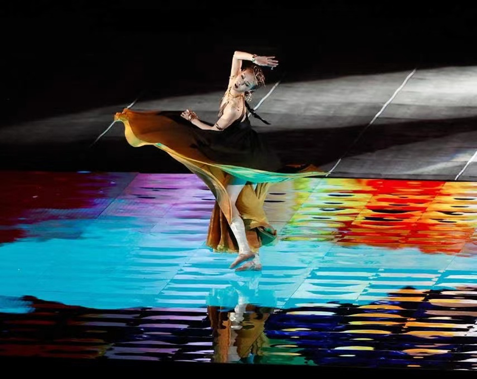 「成都時間」文藝展示以秋、冬、春、夏四季為順序展開,隨四季的變換呼應出音樂、舞蹈、燈光視效等元素的變化。寓意豐收、成就的「秋」,以美輪美奐的視頻畫面展現大美的雪山下的公園城市。「冬」,則以獨舞的形式展現傳說中的太陽神鳥對蜀人的護佑。在朝氣蓬勃的「春」的篇章,世運會的各個比賽項目則與成都人的日常生活、運動完美地結合在了一起。「夏」的熱情與活力,則以伯明翰現場與視頻呈現的成都地標場景中的啦啦操街舞演員鬥舞展現。在「友誼地久天長」樂曲聲中,來自成都各行各業的人們熱情歡迎全世界的朋友來到成都。最後,憨態可掬的熊貓人偶,向全世界發出2025年相約中國,相約成都、「Welcome to Chengdu」的邀請。