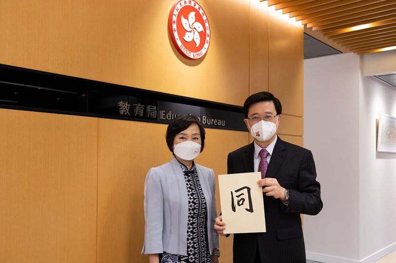 行政長官李家超16日於社交媒體表示,將「同」字送給應屆考生:「無論你們未來是繼續升學、就業還是創業,我們都會與你們一起「同」行。」李家超說,希望各界朋友們齊為DSE考生打氣,並在社交平台上,以「一人一字」方式勉勵考生!他又引述《禮運大同篇》名句「大道之行也,天下為公,選賢與能,講信修睦」,呼籲各界「同」心合力,「同」為香港開新篇!