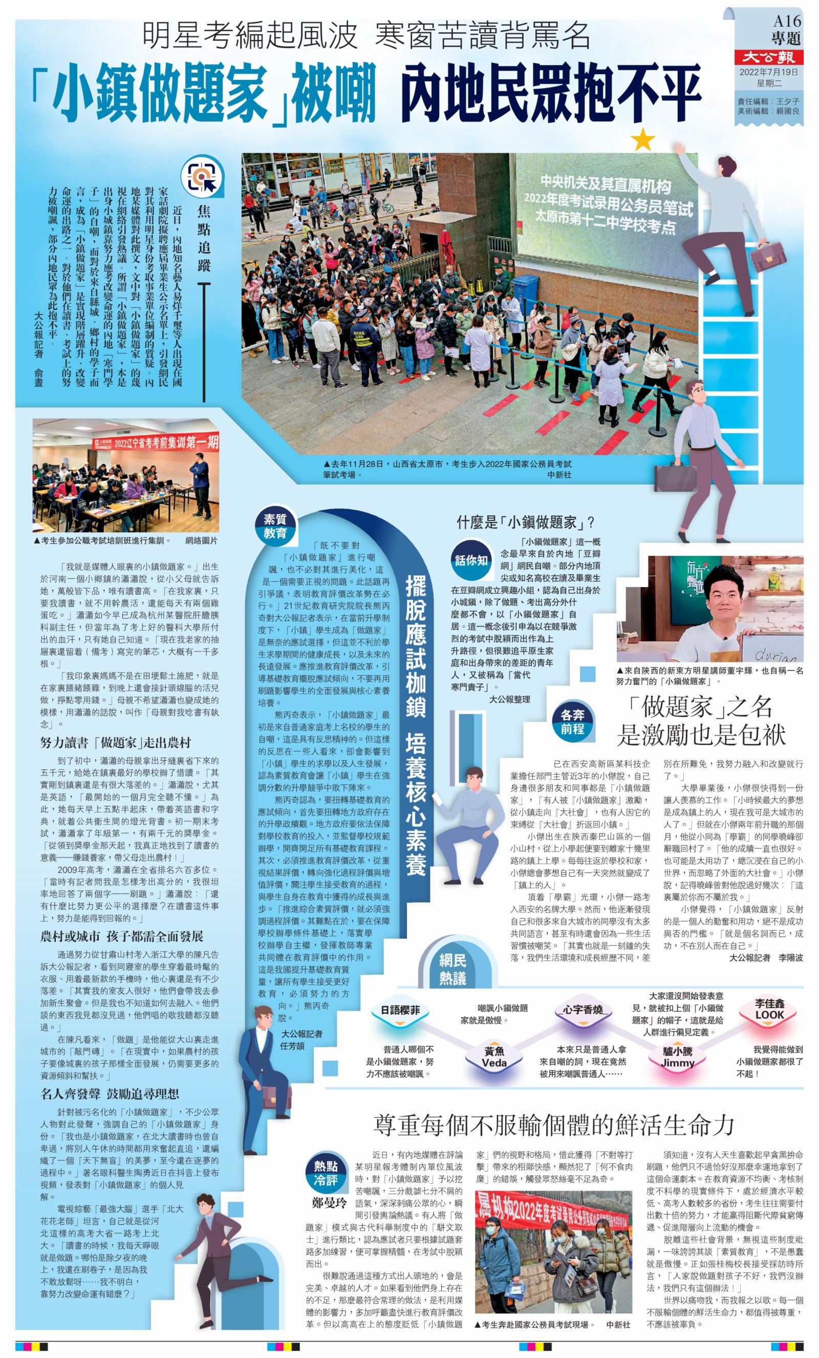 (大公報 記者 俞晝、李陽波、鄭曼玲)近日,內地知名藝人易烊千璽等人出現在國家話劇院擬聘應屆畢業生公示名單上,引發網民對其利用明星身份考取事業單位編制的質疑。內地某媒體對此撰文,文中對「小鎮做題家」的蔑視在網絡引發熱議。所謂「小鎮做題家」,本是出身小城鎮靠努力應考改變命運的內地「寒門學子」的自嘲,而對於來自縣城、鄉村的學子而言,成為「小鎮做題家」是實現階層躍升、改變命運的出路之一。對於他們在讀書、考試上的努力被嘲諷,部分內地民眾為此抱不平。