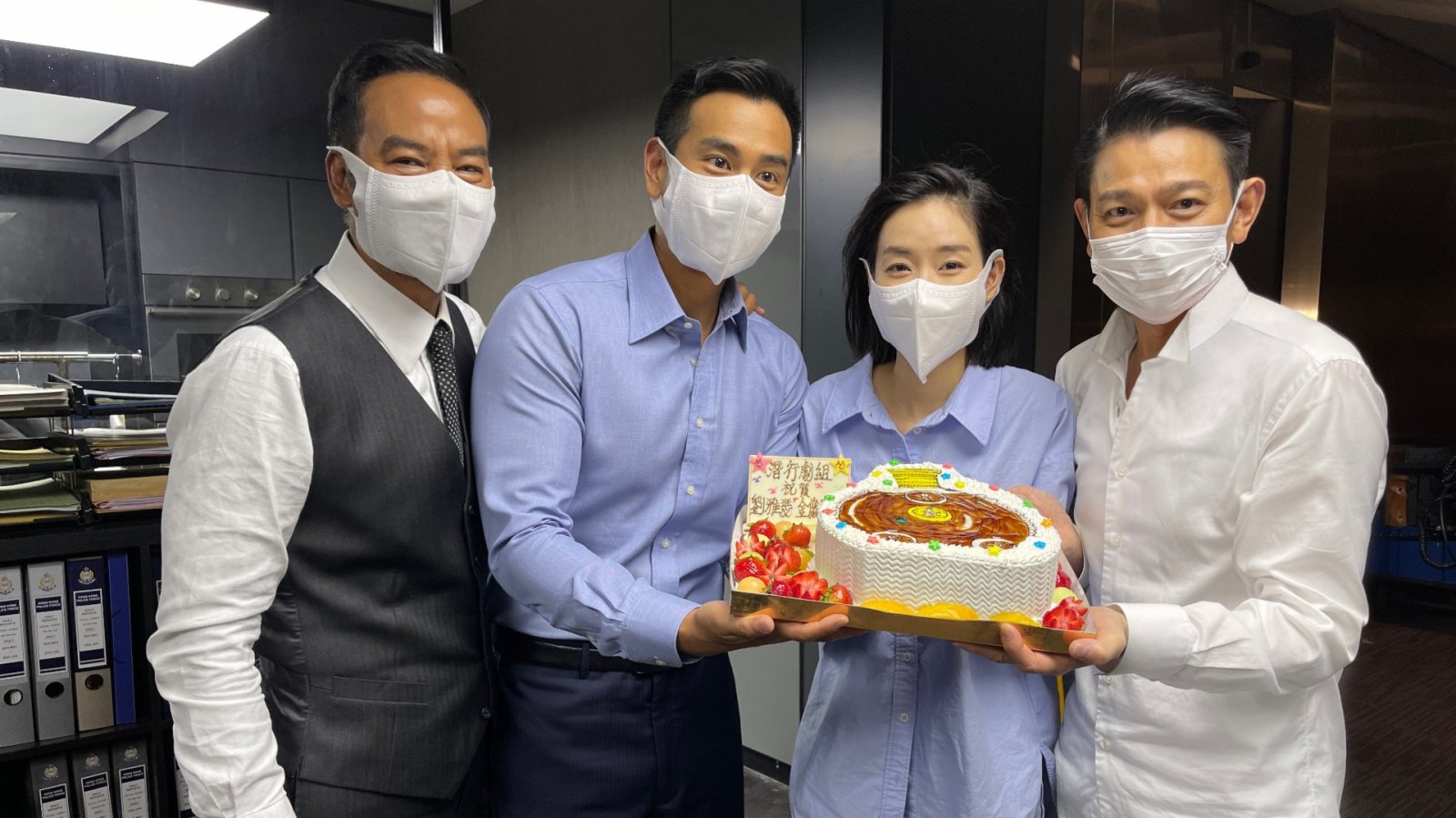 (大公文匯全媒體 記者 陳惠芳)劉雅瑟憑《智齒》中「王桃」一角在香港電影金像獎奪得「最佳女主角」,現正拍攝劉德華監製的電影《潛行》,昨日(18日)返回劇組開工,一眾台前幕後為她送上祝福,監製兼主演劉德華,聯同彭于晏(Eddie)及任達華,為她送上蛋糕作祝賀。