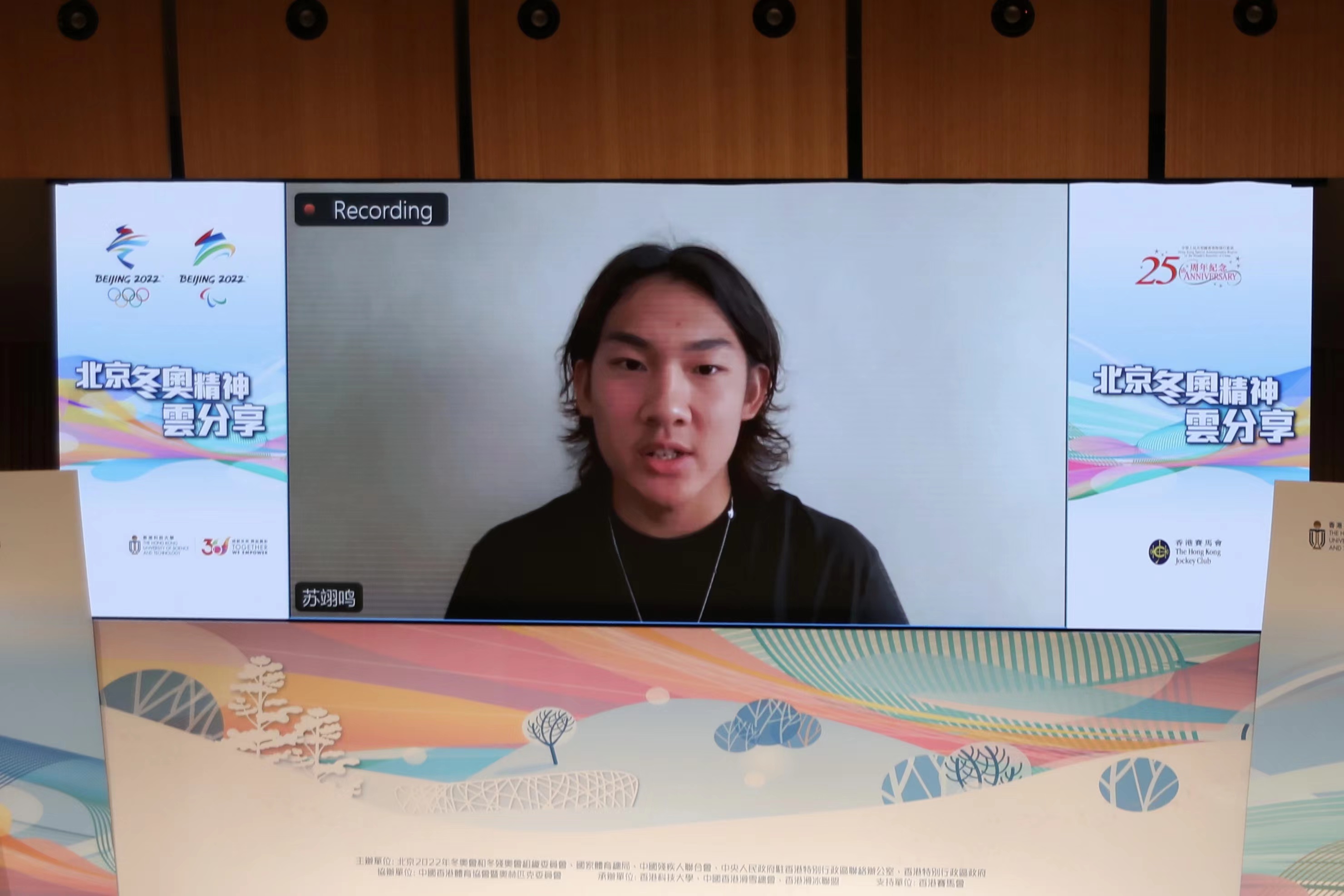 参與「北京冬奥精神雲分享」活動的講者包括奥運金牌得主單板滑雪選手蘇翊鳴、輪椅冰壺選手閆卓和花樣滑冰選手隋文靜,以及北京冬奥中國香港代表團持旗手暨短道速滑選手朱定文、國家速滑館場館運行團隊主任武曉南、中國花樣滑冰隊總教練趙宏博,與北京冬奥義工李嘉馨。
