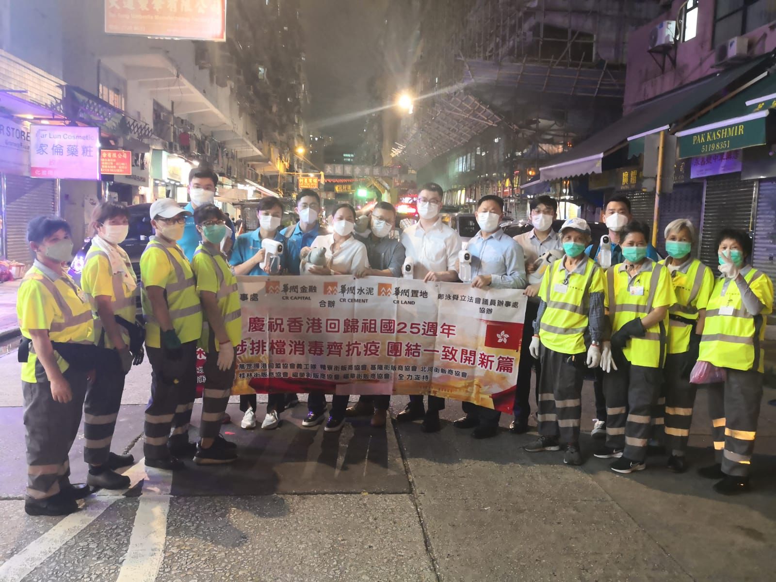 活動昨日在深水埗街坊福利會禮堂舉行啟動禮,參與義工約50人。主禮嘉賓致辭時紛紛表示,是次活動正正體現了在現時疫情仍然反覆的時候,華潤3間成員公司作為在港央企,積極響應習主席和中央號召,不但積極建設香港,推動經濟發展,更關心社會,關愛基層,結合實幹區議員、以及愛國基層社團等貫徹落實習主席重要講話精神。啟動禮完結後,一眾義工兵分多路,推着手推車,給每一個排檔從業員派發漂白水,宣傳防疫抗疫知識。晚上8點左右,義工隊再次出動,聯同深水埗食環署清潔隊,攜手進行街道清潔和排檔清潔,令活動達至「1+1>2」的效果,受到街上眾多市民稱讚。