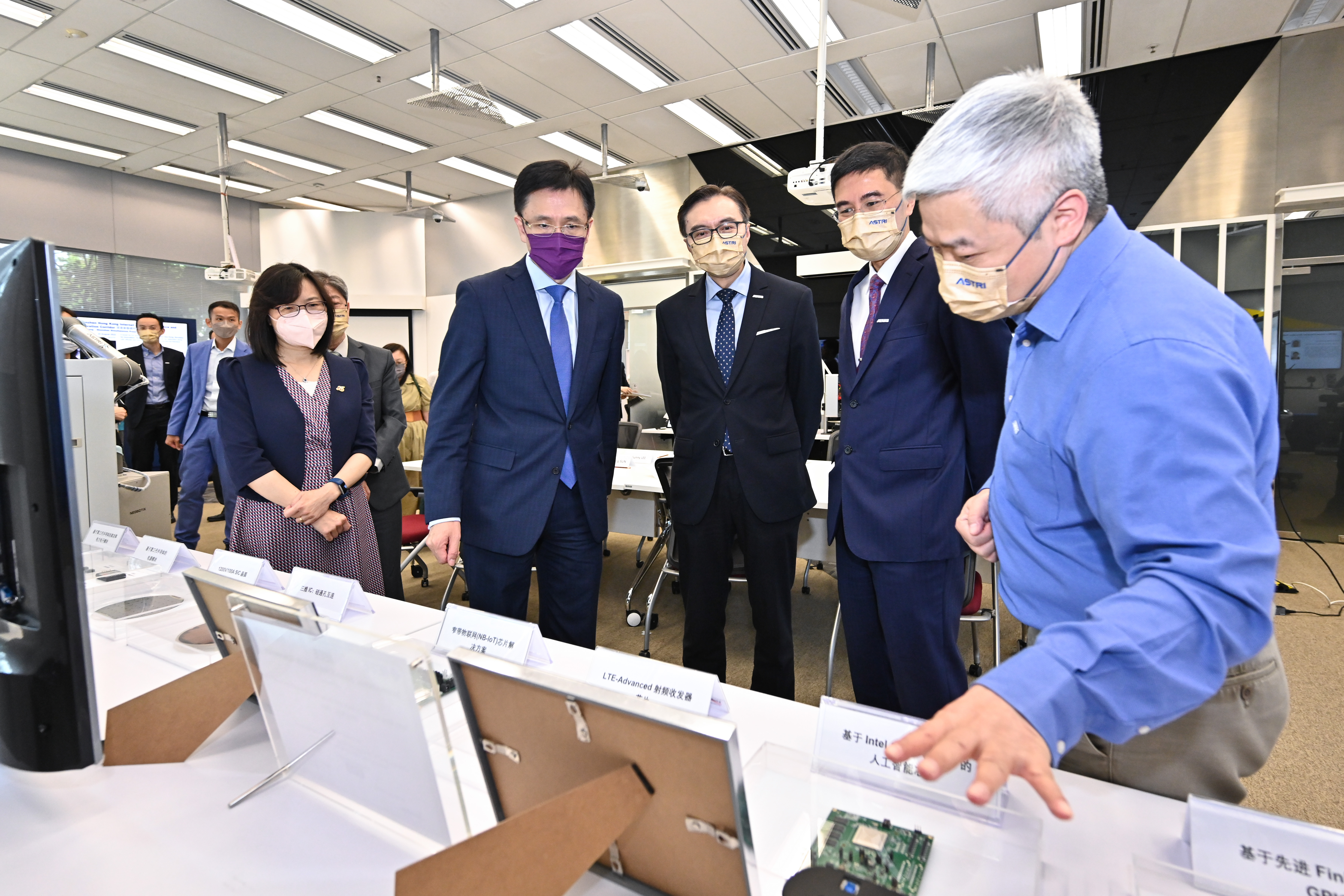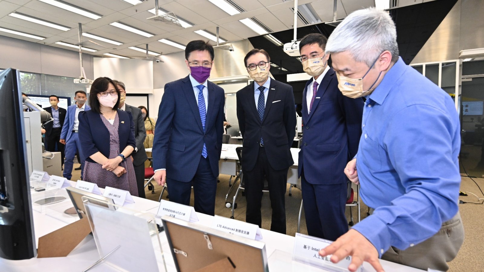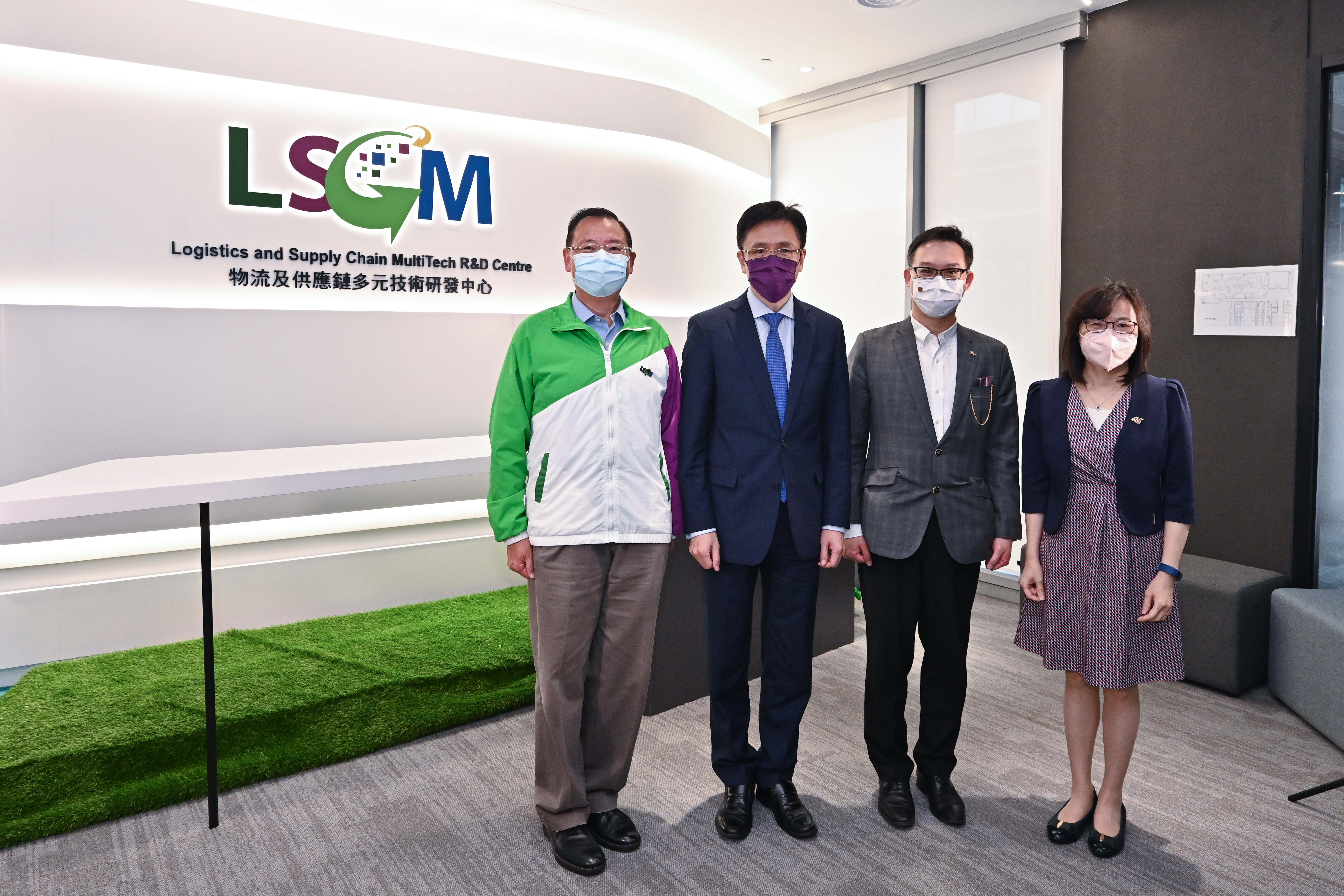 孫東隨後轉往物流及供應鏈多元技術研發中心,了解中心的研發範疇及重點,包括在過去兩年多協助政府衞生當局開發的十多個系統,以支援各項防疫措施的推行。他感謝中心在疫情期間默默付出,不辭勞苦研發抗疫相關的產品及系統,協助香港有效應對疫情。