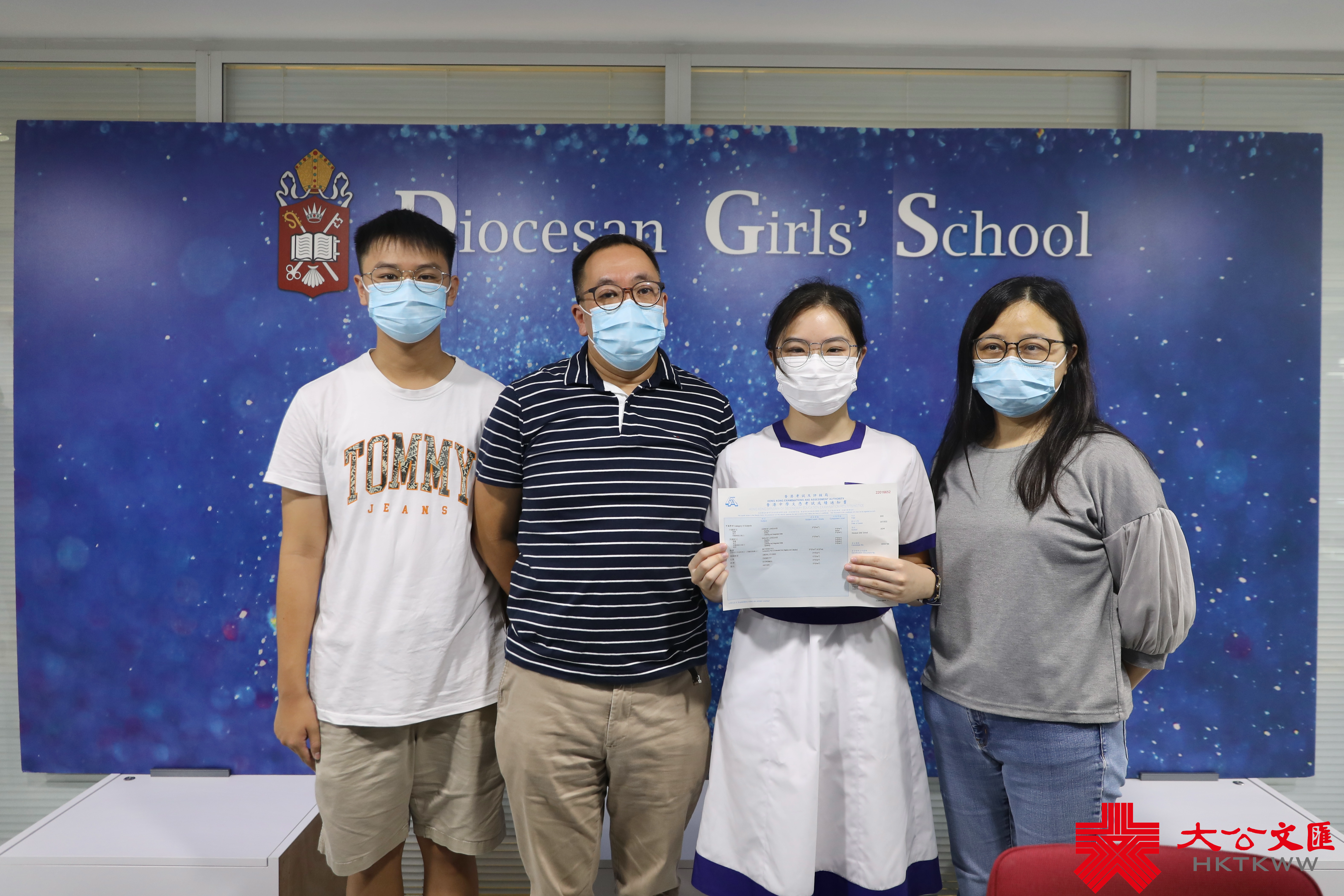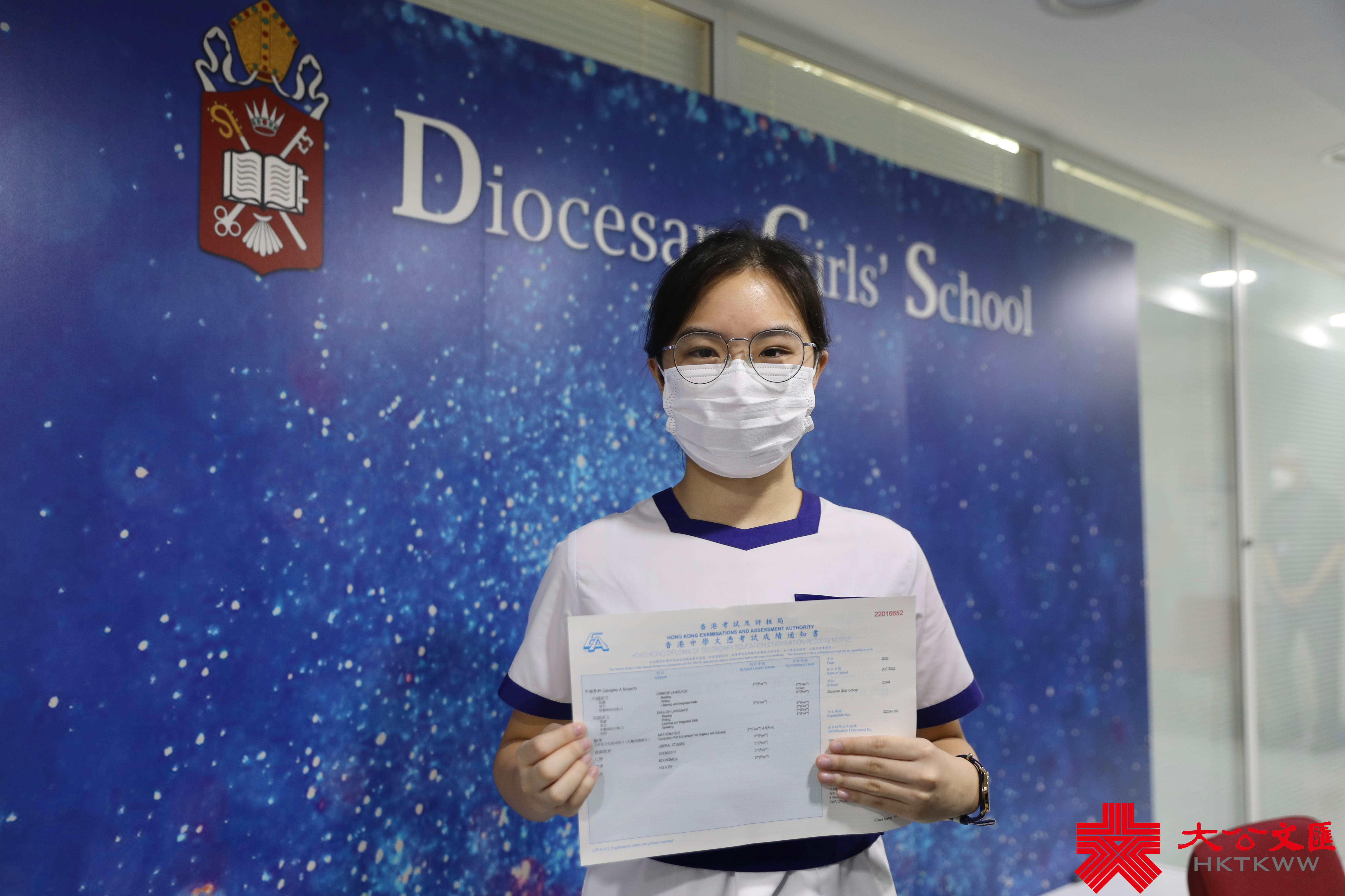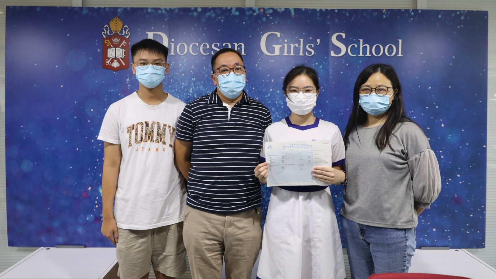 拔萃女書院冼家朗同學考獲七科5**,包括中國語文、英國語文、數學、通識教育、化學、經濟、歷史。她表示感到十分興奮,沒有想到能取得如此好的成績,會和家人吃頓大餐慶祝。