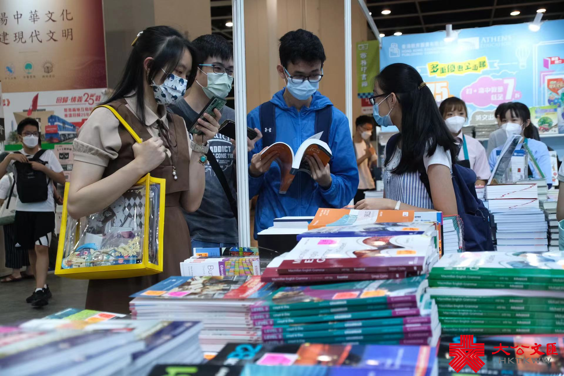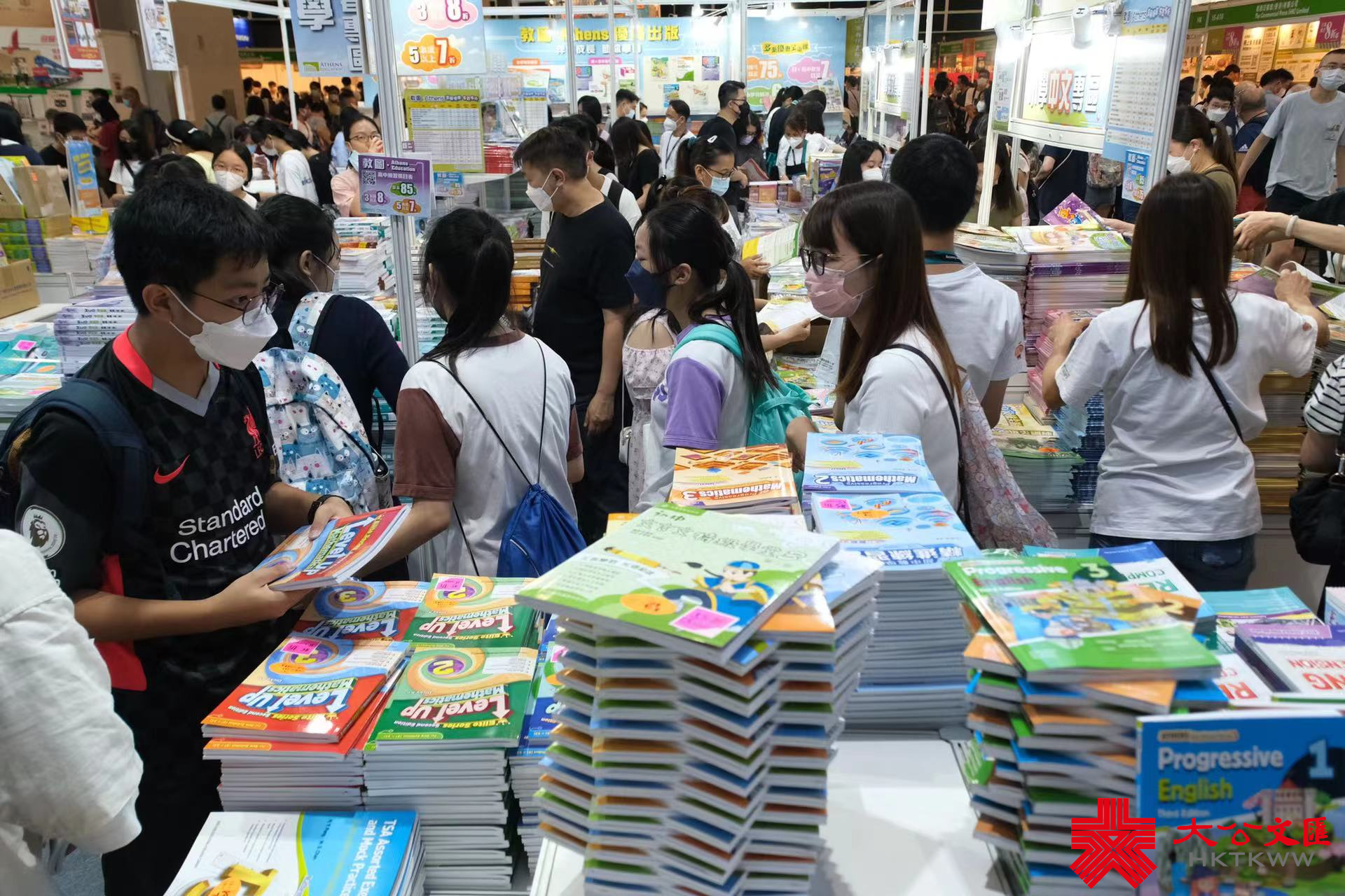 大公文匯全媒體報道,香港書展今日(20日)起至26日,一連七日在香港會議展覽中心舉行。開展首日便吸引大批市民前來,今早10時書展開放入場前,已有不少市民在外排隊等候。開展後,場館內人頭攢動,閱讀氣氛濃烈,在一些教育輔導書的攤位,不少學生駐足選購。