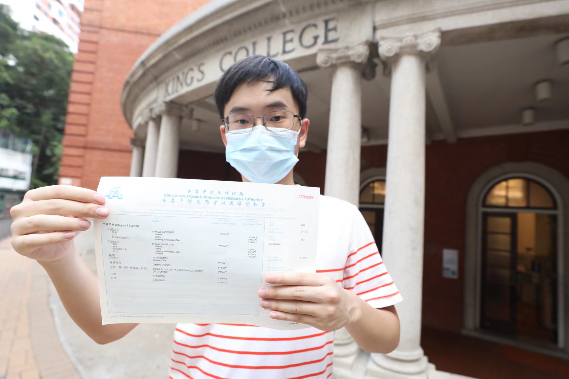 (大公文匯全媒體 記者 楊新雨)香港中學文憑考試(DSE)今日(20日)放榜,英皇書院甘仲軒同學考獲七科5**,成為本屆狀元之一。他表示,沒有預期到成績這麼好,對自己來講是一個很大的驚喜,心情非常開心,拿到成績立刻就同家人分享,但未拿到成績前心情非常緊張,今早4點就起身,通過聽音樂來放鬆心情。