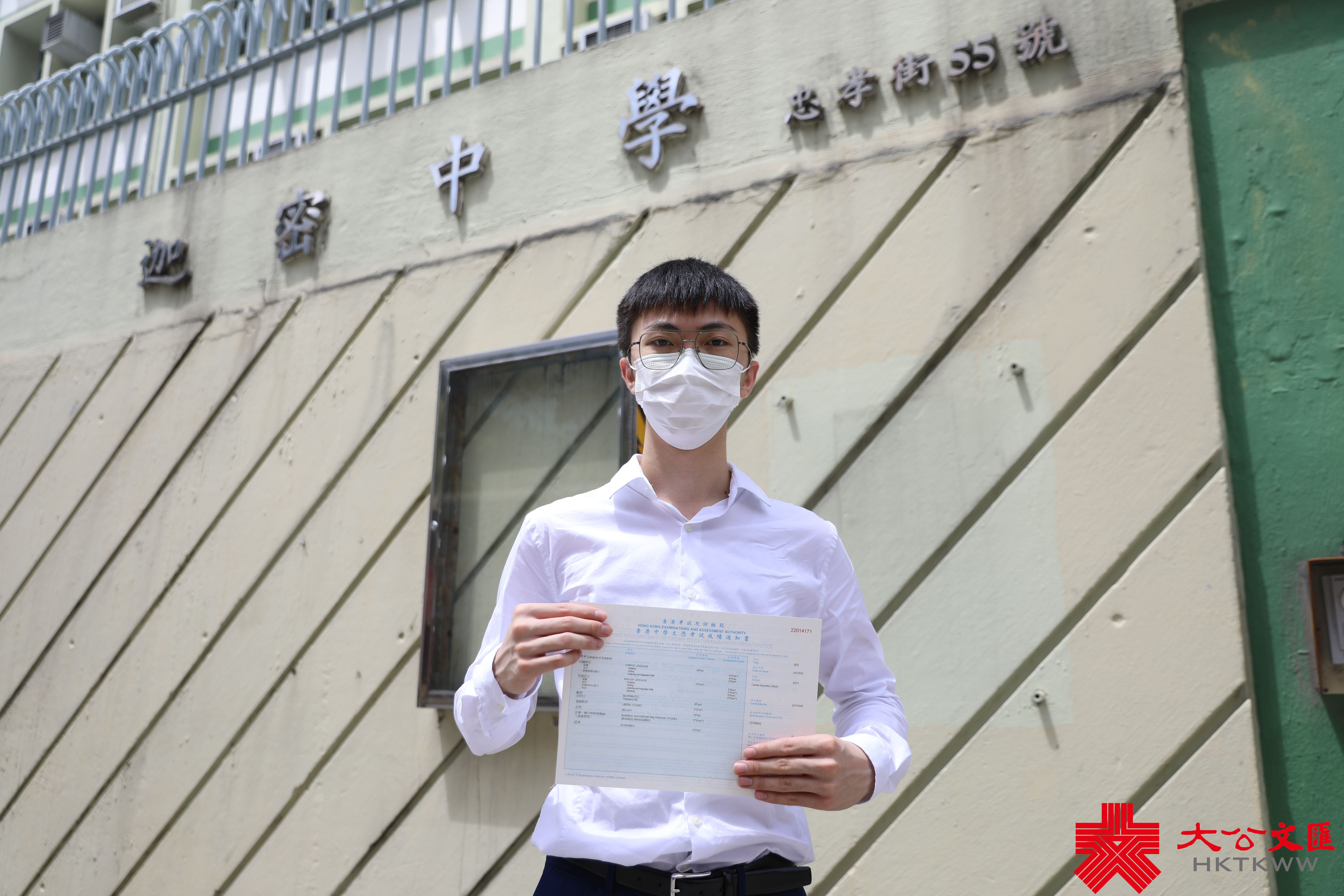 大公文匯全媒體報道,2022年DSE今日(20日)放榜,不少考生早上回學校領取成績單,今年有近42%考生考獲「33222」入讀大學門檻,約1.3人爭一個位。迦密中學的施璟成考獲6科35分的佳績,他接受大公文匯全媒體訪問時表示,成績在預料之中,沒有特別感到緊張,有意升讀北京大學法律系,認為北大匯聚全國各地的頂尖人才,能夠提升自己的眼界和能力,更有利於長遠的發展。他說,將來想成為律師,期望在大學期間能夠探索更多領域的知識。