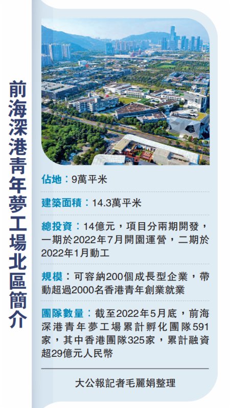 截至2022年5月底,前海深港青年夢工場累計孵化團隊591家,其中香港團隊325家,累計融資超29億元人民幣。