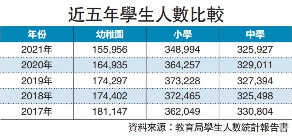 (大公報 記者 鍾怡、林良堅)本港出生率低、內地跨境生疫下無法來港以及移民影響,令中小學生人數出現結構性下滑。