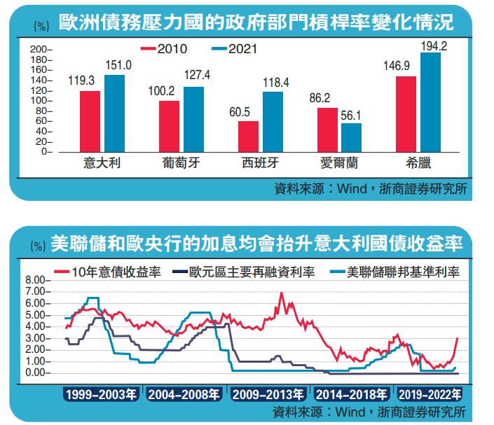 如果俄烏危機導致歐盟進一步與俄羅斯能源脫鈎並增加歐盟滯脹壓力,則單目標制的歐央行被迫緊縮應對通脹壓力,後續的加息幅度可能會進一步加碼。歐央行的政策轉向將從兩個方面增加歐洲主權債務潛在壓力: