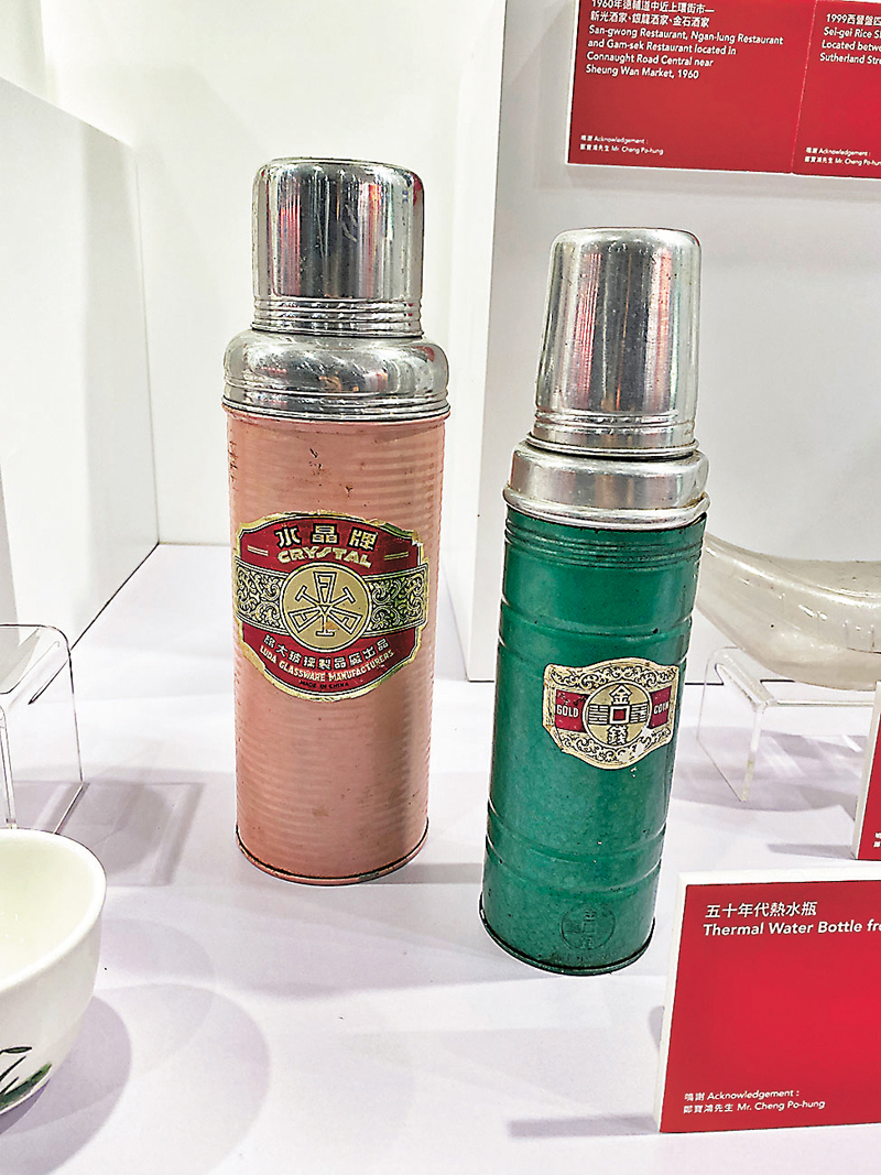 一紅一綠的熱水瓶,是上世紀五十年代市民的集體回憶,香港歷史愛好者鄭寶鴻收藏了水晶牌和金錢牌的熱水瓶,他說:「這些熱水瓶是上世紀五十年代每家每戶都會有的物品。」在熱水瓶旁,有一個形狀相當奇怪的奶樽,外表就像一隻香蕉,頭尾有着奶嘴,據了解這種設計方便了父母替雙胞胎嬰兒餵奶。