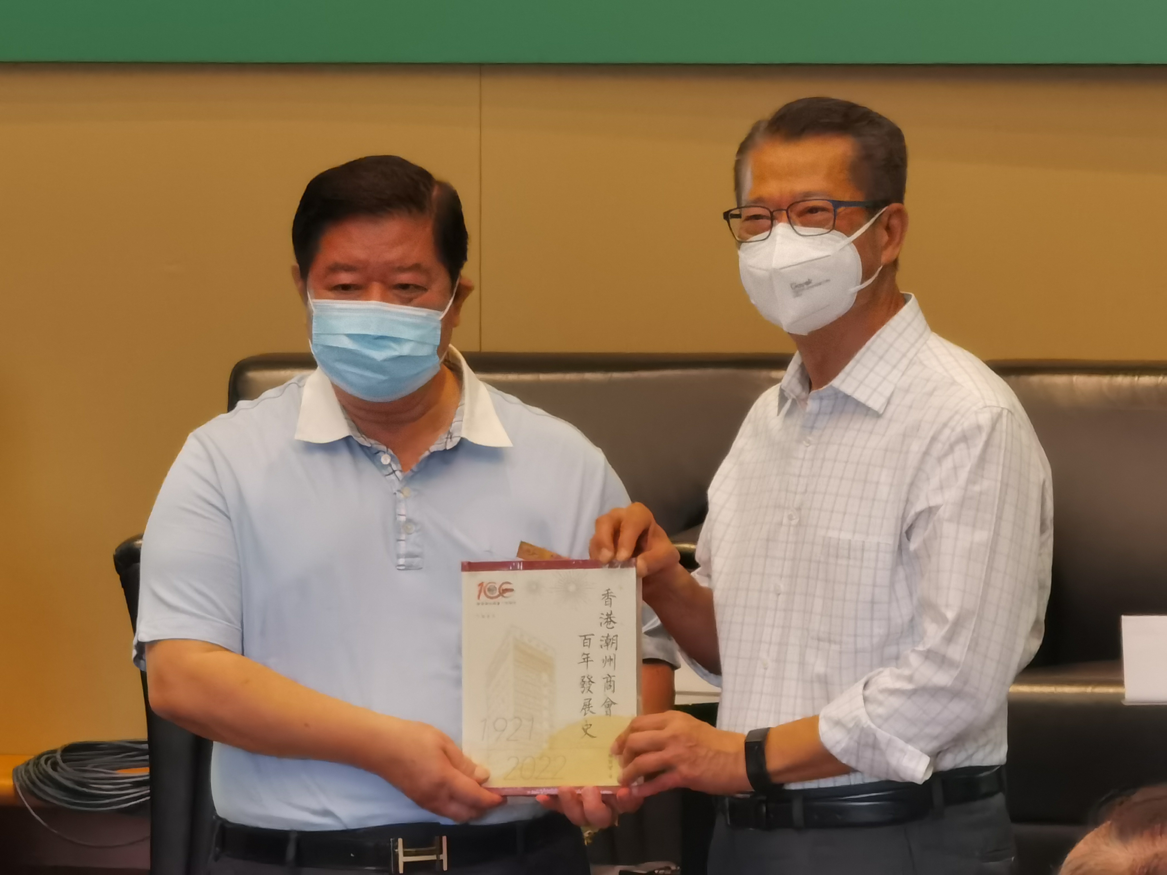 財政司司長陳茂波表示,一百年多來,潮州商會不僅聯繫鄉親、加強友誼,亦發揮潮州人守望相助、互相支持的精神,不斷推動和舉辦各種社會公益事業,在扶貧賑災方面不遺餘力、貢獻良多。他引用相關數據指,潮州人佔香港總人口的七分一,是香港社會重要的族群。他續指,潮州人吃苦耐勞、勤奮顧家,為香港經濟發展做出重要貢獻,是中流砥柱的愛國愛港團體,為維護香港社會和諧繁榮穩定和香港商貿經濟發展做出重大貢獻。潮州鄉民在香港不同崗位共同服務社會,其成功故事是香港成功的縮影。