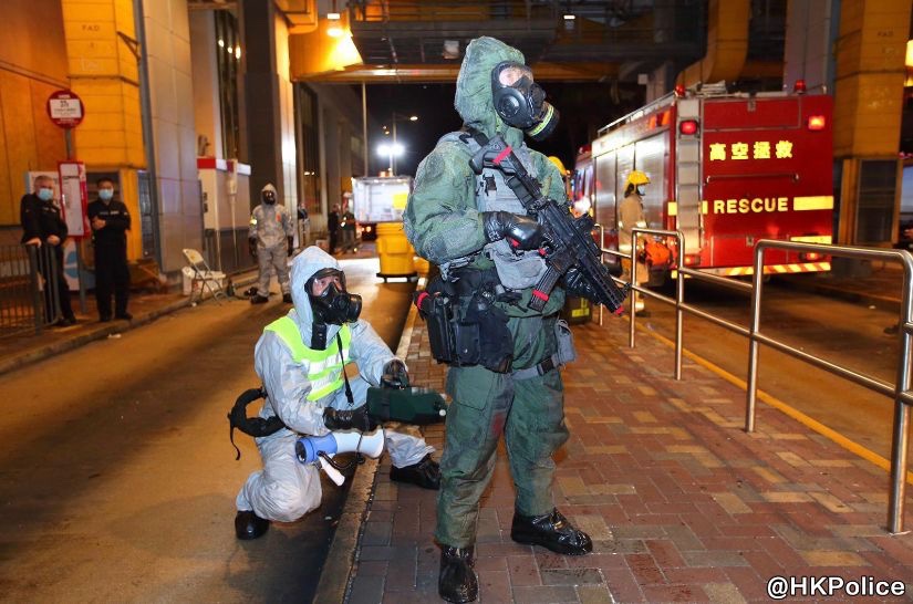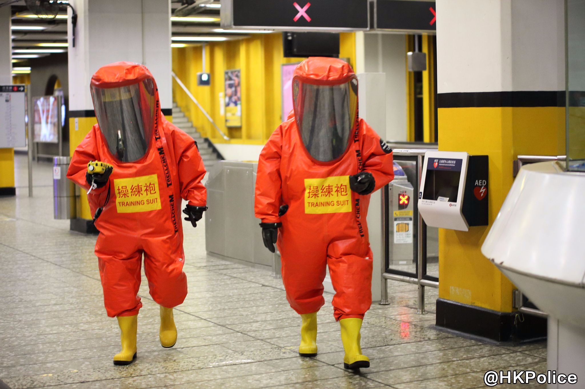 大公文匯全媒體報道,警方聯同消防處及港鐵公司,於今日(23日)凌晨舉行代號「天琴」的跨部門化生輻核反恐演習。參與單位包括港鐵公司、鐵路警區、新界南總區衝鋒隊、爆炸品處理課、消防處新界南總區以及危害物質專隊。