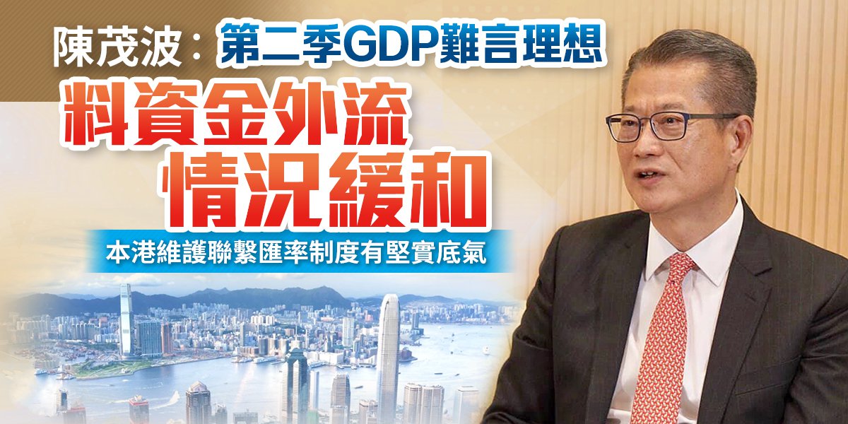 大公文匯全媒體報道,財政司司長陳茂波今日(24日)發表網誌,指本周將公布的本港最新出口數字並不樂觀,下月初將發表的第二季本地生產總值預估數字雖可望稍有改善,但情況亦難言理想。對於近期金管局多次入市承接港元沽盤,陳茂波表示,本港銀行體系資金充裕,維護聯匯制度有堅實底氣,令港元最終穩定於7.75至7.85的區間內,所謂的「資金外流」情況便會緩和。
