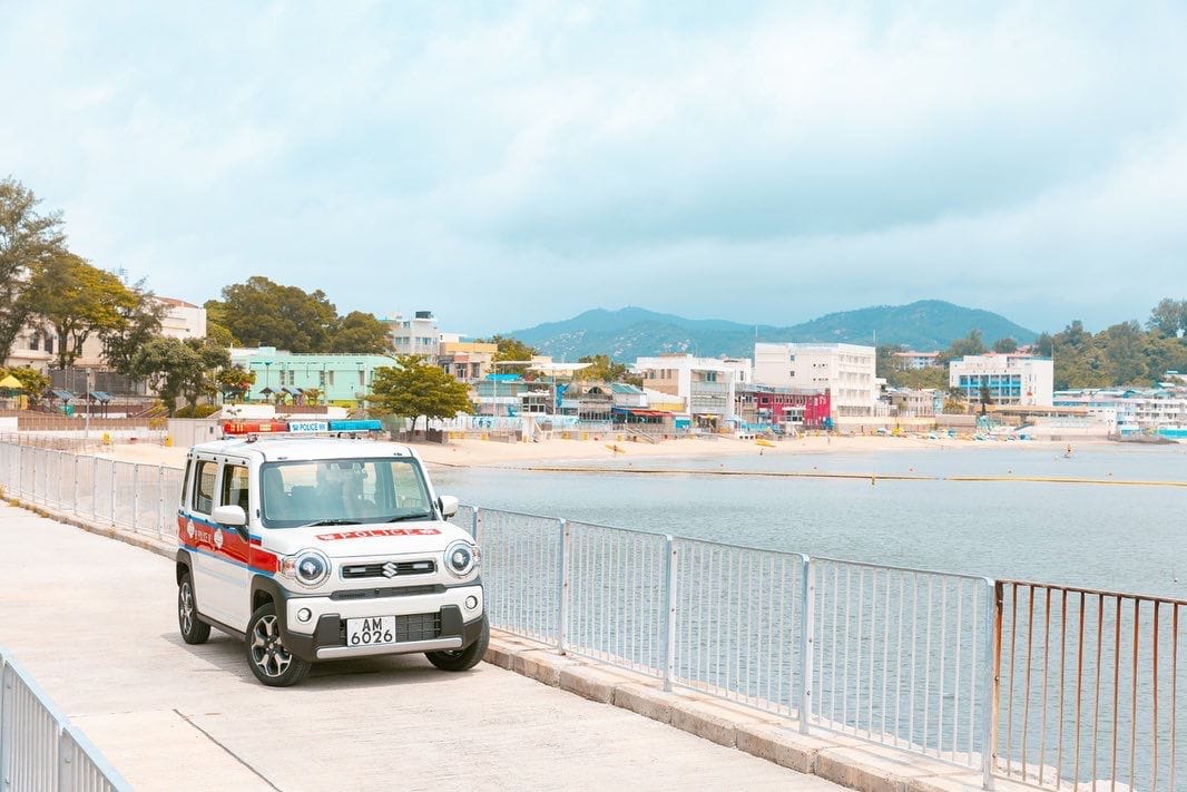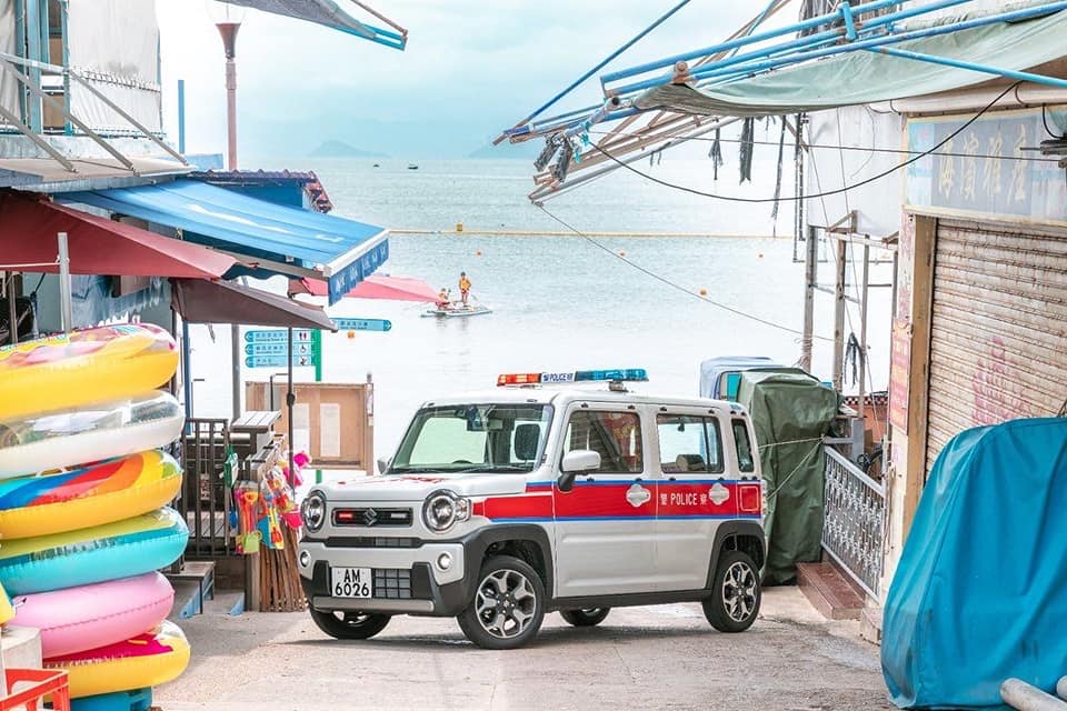 其中一張相片顯示,小型巡邏車停泊在前往長洲東灣泳灘的小路上。新車是日產車廠鈴木的Suzuki Hustler,車長約3米、闊約1.5米 、高約1.7米,適合在窄街小巷行駛。