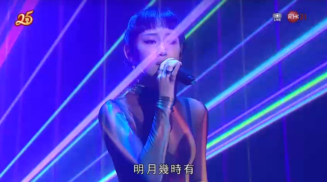 炎明熹穿上透視裝,獻唱一連串經典歌,包括《但願人長久》、《愛情陷阱》等。姚焯菲今日穿綠白混色禮裙,十分鬼馬精靈。