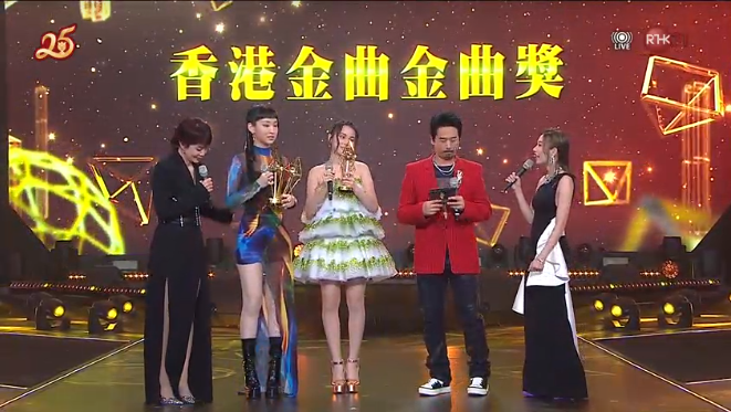 接着大會司儀鄭裕玲、崔建邦、李志剛及崔天頤出場,並隨即公布《先哭為敬》《真話的清高》《我不如》《E先生連》《荊棘海》《記憶棉》《It's Ok to be sad》(排名不分前後)獲「香港金曲金曲獎」。