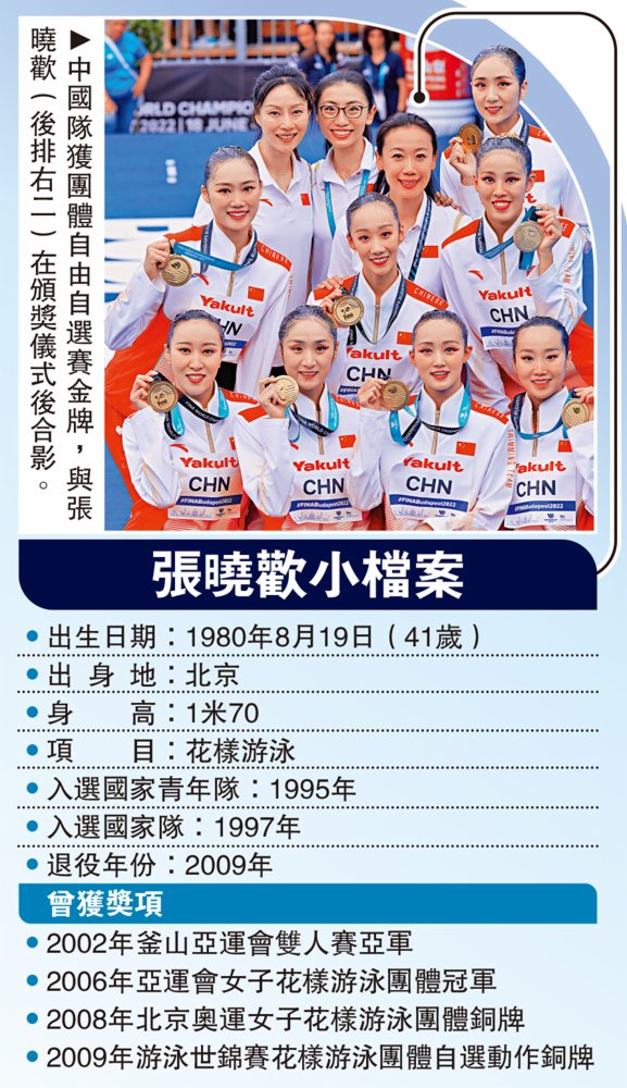 從運動員到教練員,張曉歡經歷過5屆奧運會和9屆世錦賽。看着年輕的隊員們在世錦賽比賽場上綻放光彩,第一次挑大樑帶隊的張曉歡心存感激。
