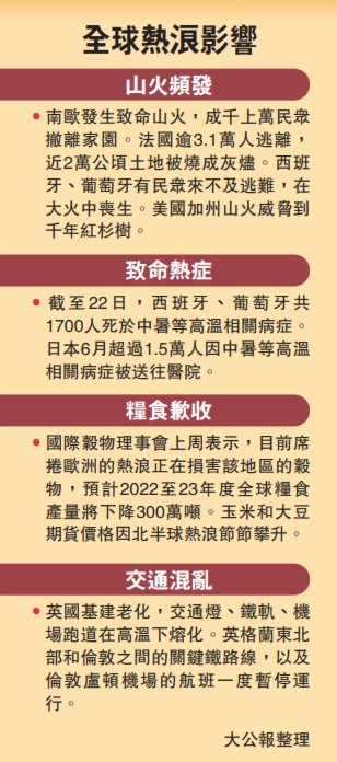 酷熱和及乾旱給美國農業和畜牧業帶來壓力,威脅到玉米、大豆等農作物,以及牛群等牲畜。氣象學界指出,美國本月高溫仍將持續,全球糧荒恐難緩解。